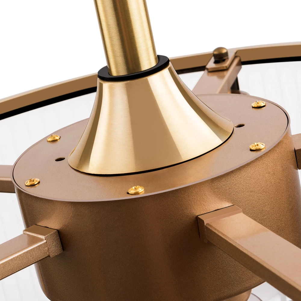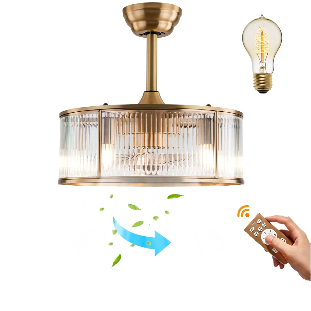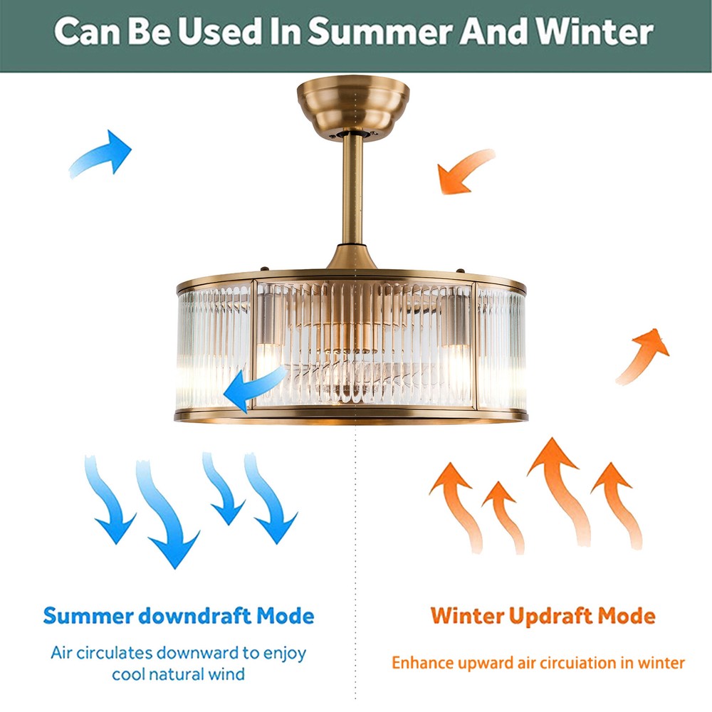 Absolutely love this retro gold ceiling fan! The copper motor runs smooth and quiet, and the six-speed remote makes adjusting breeze a breeze. The caged design adds vintage charm while tempered glass gives it a premium feel—perfect for living rooms. Super easy to install, energy-efficient, and the reversible function is great for any season. Just stunning!