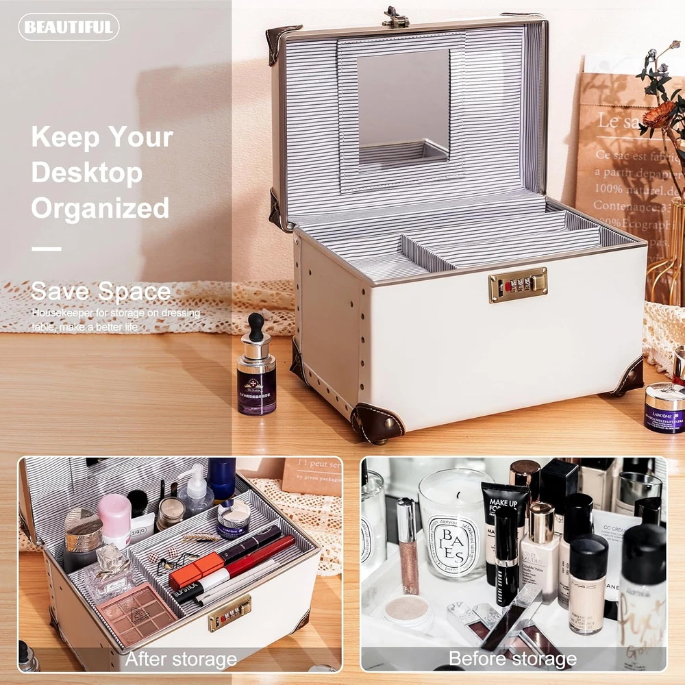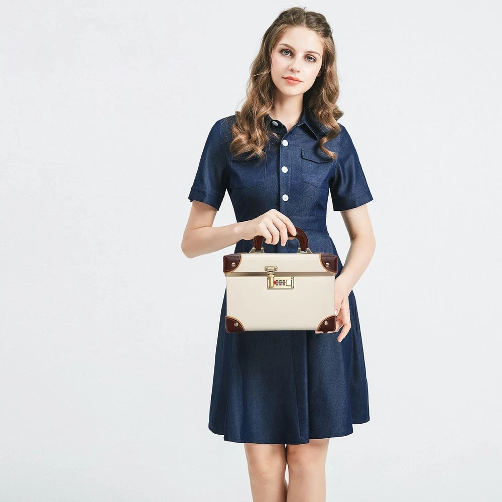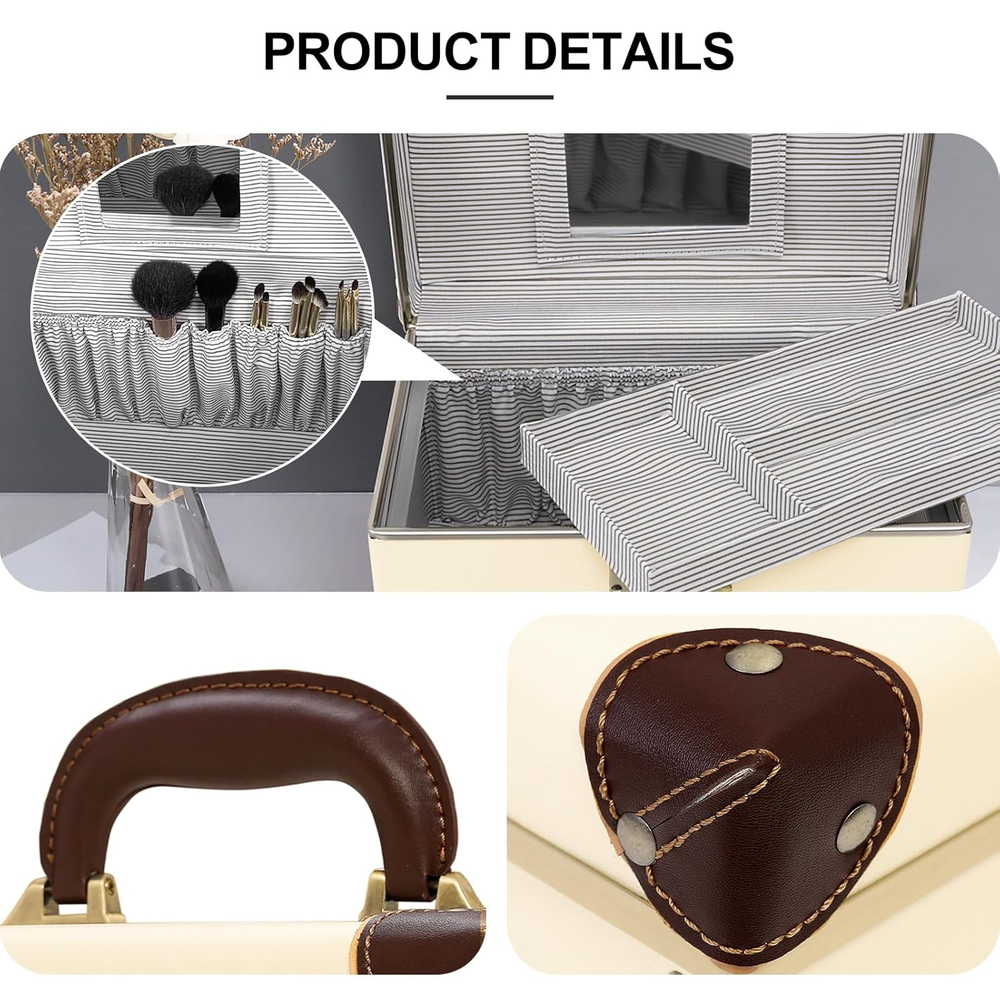 Absolutely love this makeup case! The retro leather look is gorgeous and it holds all my essentials perfectly. The lock gives me peace of mind when traveling, and it's surprisingly spacious yet compact. The quality feels luxurious and it wipes clean so easily!