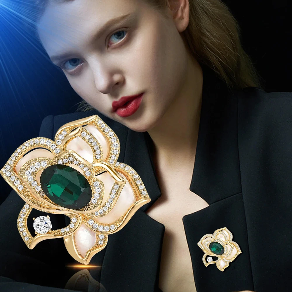 Retro New Green Crystal Brooch High-end Women's Luxury Atmospheric Accessories