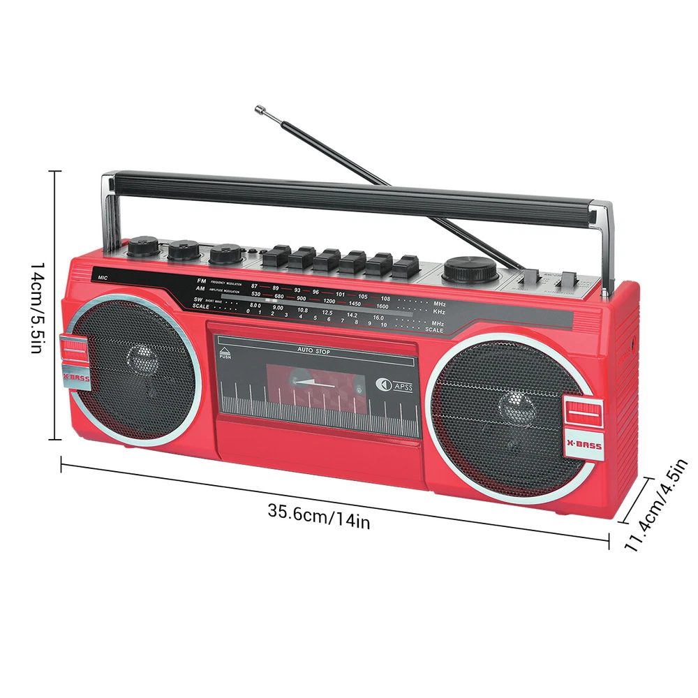 Retro Radio Cassette Radio Player MP3 & Recorder Bluetooth Speaker AM/FM/SW/USB SPECIFICATIONS: Material: ABS Color: Black Bluetooth Name: RXC-25BT AC power supply: 120V DC power supply: 6V (4xD battery) Power output: 10 RMS watts Function: Bluetooth, USB, SD, FM, AM, SW or AUX mode Box recorder/player with built-in condenser microphone Equipped with capacitive microphone FF/REW/REC function Size: 14 x 5.5 x 4.5 inches Weight: 3.89 pounds PACKAGE INCLUDES: 1X Retrobox Cassette Player and Bluetooth Speaker 1X AC Cable Payment Shipping Return Feedback Question Payment We accept payment via Paypal ONLY. Immediate payment is required & Shipping will be arranged only your payment is cleared. Shipping Same business day dispatch if paid by 4 pm EST(1 pm PDT). No shipping on weekend or Public Holidays & No responsibility for any customs duty. Return We stand behind our products. Items can be returned for exchange or full refund within 60 days from the date you receive your item. Return shipping is the responsibility of buyer unless the return is a result of our mistake (i.e., your receive the wrong item or damaged item). We will pay for shipping replacement back to you if an exchange is requested. If you want to initiate a return, simply clicks "Return this item" next to the transaction in My eBay, chooses a reason, and prints a return shipping label and packing slip. We’re automatically notified. Feedback Please leave us a FIVE star and POSITIVE feedback if you are satisfied with our product and service. Neutral or negative feedback will not solve problems happily. We believe communication will fix problems and hope every customer can have a good purchasing experience. Question All ebay message will be responded within 1 business day or less, except weekends and holiday!
