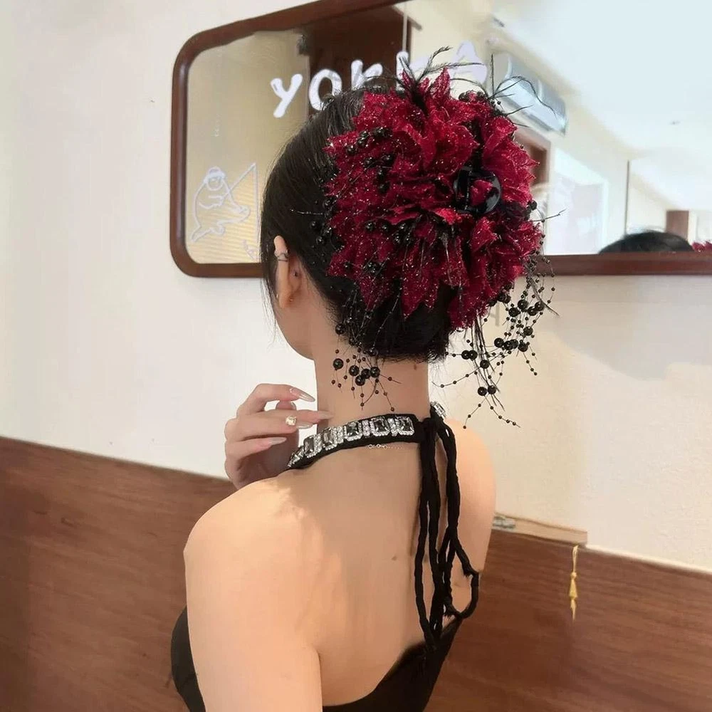 Retro Sparkling Flower Grab Clip Fashion Large Shark Headpiece Hair Clip C I9G5
