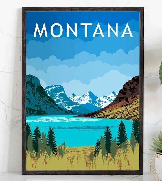 Retro Style Travel Poster, Montana Vintage Rustic Poster Print, Home Wall Art