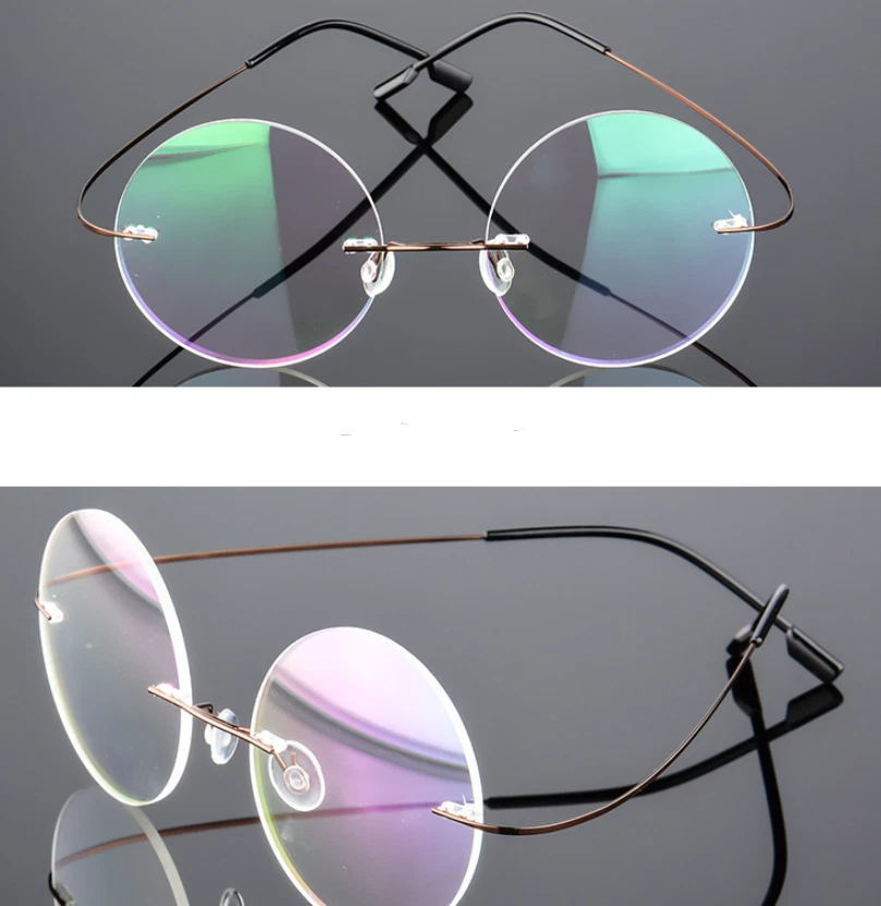 Retro round titanium alloy super elastic frameless men and women metal glasses f