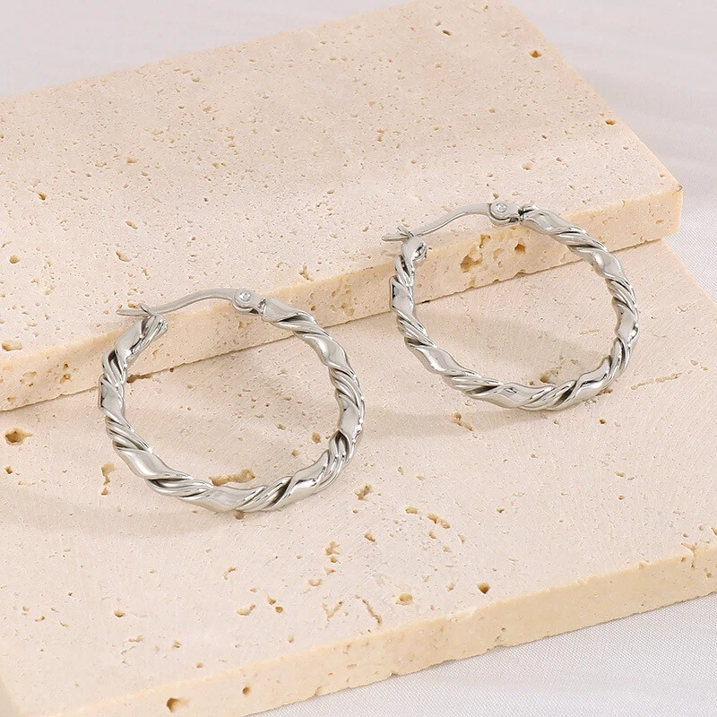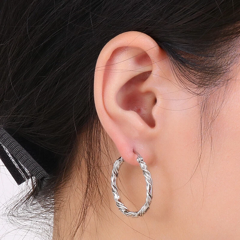 Retro simple fashion titanium steel women's C-shaped twist ear buckle