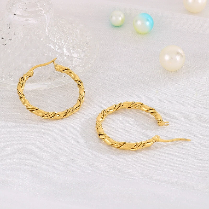 French titanium steel gold-plated earrings Vintage striped C-loop earrings