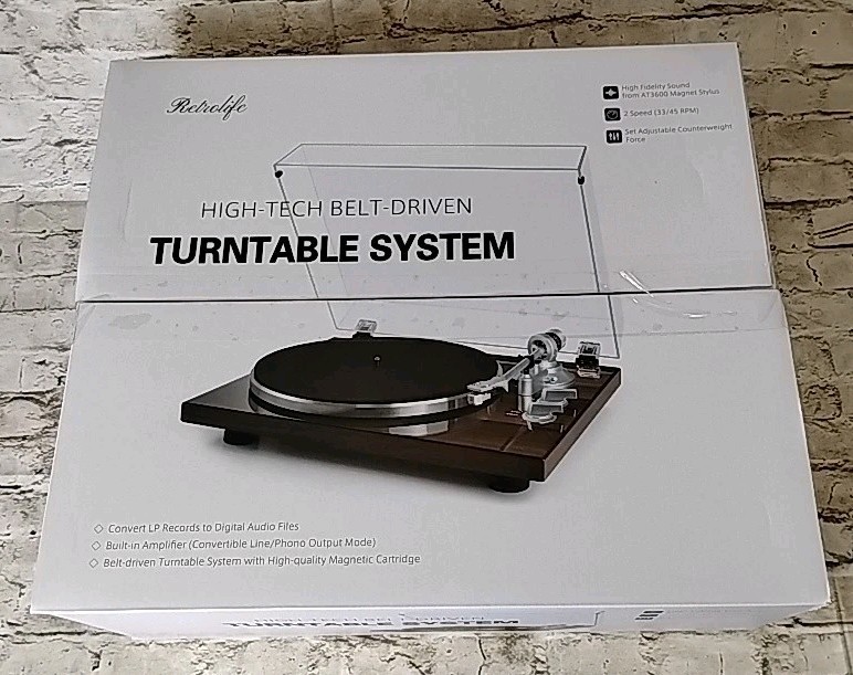 The Turntable System Beltdrive Retrolife Records Player with Bluetooth is a stylish and retro-themed turntable system from the brand retrolife. It features a belt drive system for smooth and precise record playback, along with Bluetooth connectivity for streaming music wirelessly. This innovative combination of traditional vinyl records and modern technology allows for a seamless and convenient listening experience, perfect for music enthusiasts looking to enjoy their favorite albums in both analog and digital formats. Black in color, this turntable system is a sleek and modern addition to any home audio setup.