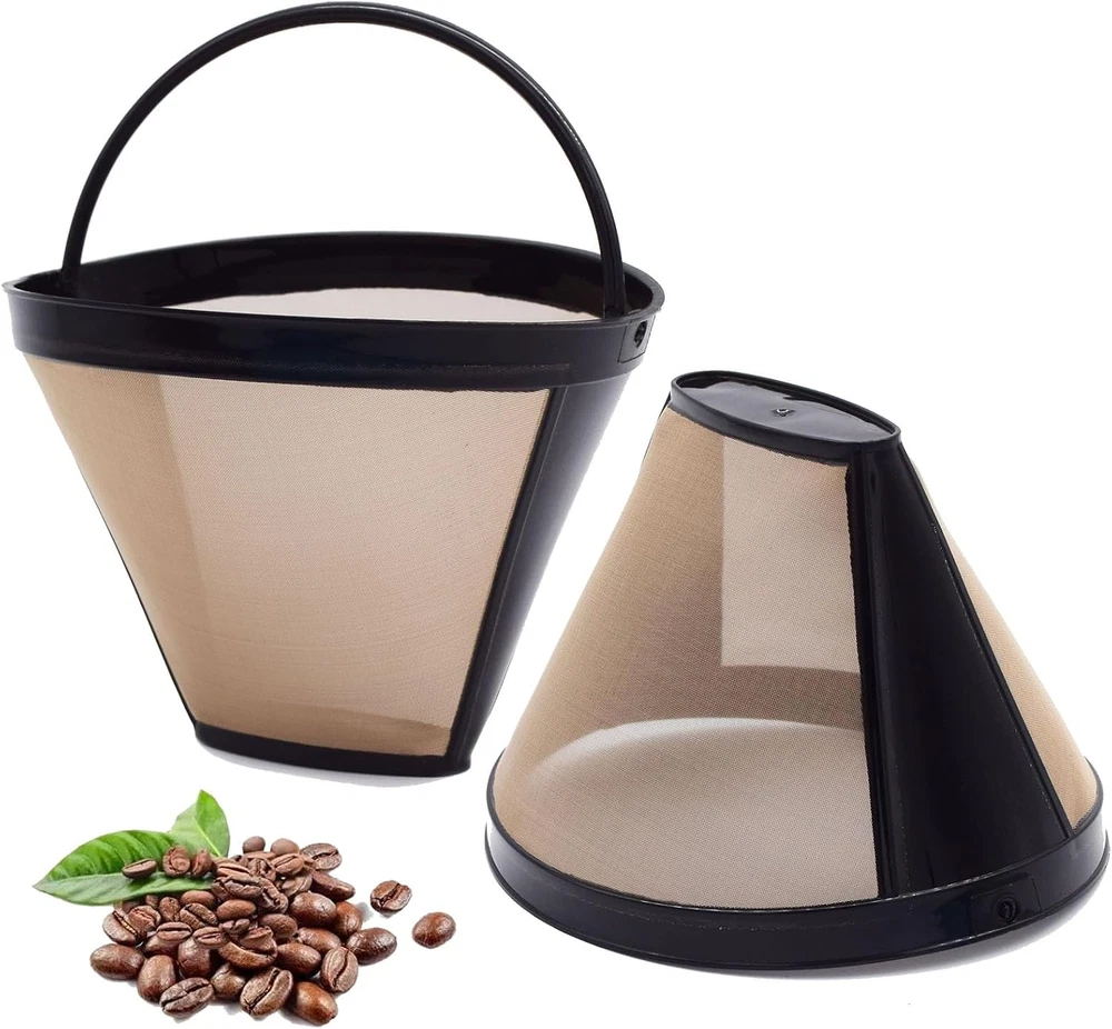 Compatible with Cuisinart,Ninja,Hamilton Beach coffee makers,drip coffee machines,pour-over coffee,which required NO 4 cone coffee filter.As a replacement coffee filter for your coffee bar brewers.These work well. 400*400/square inch ultra-fine filter holes,made of food grade stainless steel.Perfectly filter for get a pot of pure coffee flavor.Note:If the ground coffee is too fine, there will be some coffee grounds in the pot.8-12 cup basket coffee filters. Reusable #4 coffee filter,replaces your old filter to get a better filtering effect.Besides,you can save a lot of money by using reusable coffee filters instead of paper filters. These No 4 cone coffee filters are easy to clean under running water.Repeated use. Please check the size and model before purchasing.We have provided the size reference. If you need help, please feel free to . Product Description 8-12 cup reusable basket coffee filters As a replacement coffee filter for your coffee bar brewers.These work well. Compatible with Cuisinart,Ninja,Hamilton Beach coffee makers,drip coffee machines,pour-over coffee. 400*400/square inch ultra-fine filter holes,made of food grade stainless steel.Perfectly filter for get pure coffee flavor. These No 4 cone coffee filters are easy to clean under running water.Repeated use. Compatible with Ninja Coffee Makers Ninja Dualbrew System CFP201,CFP300,CFP301,Ninja Dualbrew Pro 301c,CFP305,CFP307 Dualbrew,CFP451CO Ninja CM300,CM305,CM401Ninja CE200,CE201,CE251,Ninja CF080,CF081,CF086,Ninja CFN601 Please check the size and model before purchasing. DIMENSIONS REFERENCE FLANK PHOTO INTERIOR PHOTO BOTTOM PHOTO