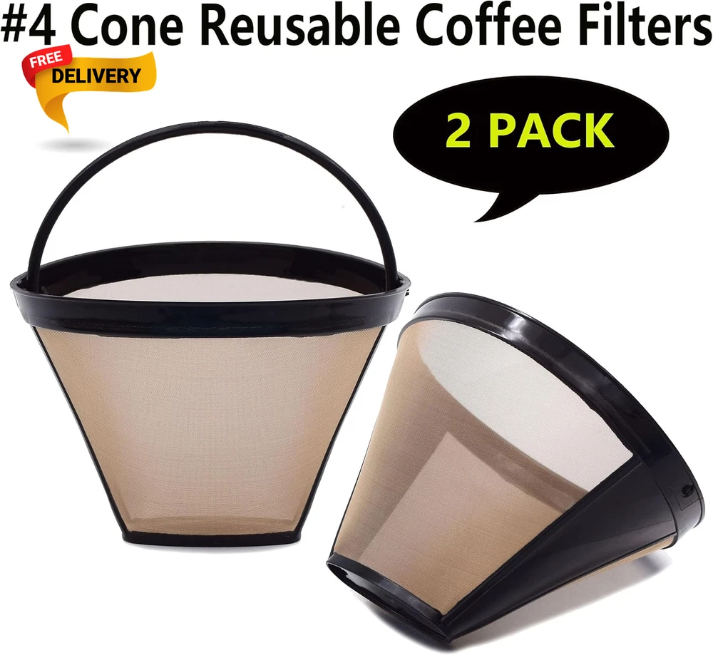 Fast Shipping On All Items 30 Days Money Guarantee Customer Support Excellent Service 100% Satisfaction Satisfaction Guaranteed Reusable 4 Cone Coffee Filters Basket Replacement for Cuisinart Coffee Makers 2 Specification Unit Count 2.0 Count Material Stainless Steel Country of Origin China Item Weight 5.3 ounces Shape Cone Package Dimensions 4.84 x 4.76 x 4.29 inches Number of Pieces 2 4.76 inches x 4.84 inches x 4.29 inches. Weight: 5.3 oz Item Description Compatible with Cuisinart,Ninja,Hamilton Beach coffee makers,drip coffee machines,pour-over coffee,which required NO 4 cone coffee filter.As a replacement coffee filter for your coffee bar brewers.These work well. 400*400/square inch ultra-fine filter holes,made of food grade stainless steel.Perfectly filter for get a pot of pure coffee flavor.Note:If the ground coffee is too fine, there will be some coffee grounds in the pot.8-12 cup basket coffee filters. Reusable #4 coffee filter,replaces your old filter to get a better filtering effect.Besides,you can save a lot of money by using reusable coffee filters instead of paper filters. These No 4 cone coffee filters are easy to clean under running water.Repeated use. Please check the size and model before purchasing.We have provided the size reference. If you need help, please feel free to contact us. About us We offer the best prices around on high quality products. Our E-store includes media such as books, movies, music and games while offering electronics, toys, sporting apparel, clothing, tools, general home, garden items and more. Shipping We are always working hard to ensure your package arrives as soon as possible. Please understand that some factors like weather, high postal traffic, and the performance of shipping companies are outside of our control. We offer free shipping to the lower 48 states and ship within 2-3 business days of payment, usually sooner. We do not accept P.O. Boxes. Please provide a physical address. For shipping outside of the continental USA, we only use eBay's Global Shipping Program.The item is shipped to KY and then sent to the rest of the world. International customers are responsible for all duties and taxes. Continue to check out to calculate costs for shipping the item to your country. Messages regarding eBay's Global Shipping Program MUST be directed at eBay EXCLUSIVELY. Returns We offer a 30-Day Return Policy on items in which you are not completely satisfied with. You have the option of a full-refund or an exchange of the item. No returns are available on items shipped outside of the USA Satisfaction We try over very best to make sure every customer is completely satisfied. If there's a problem, message us! We're happy to help. Payment Options Shop With Confidence