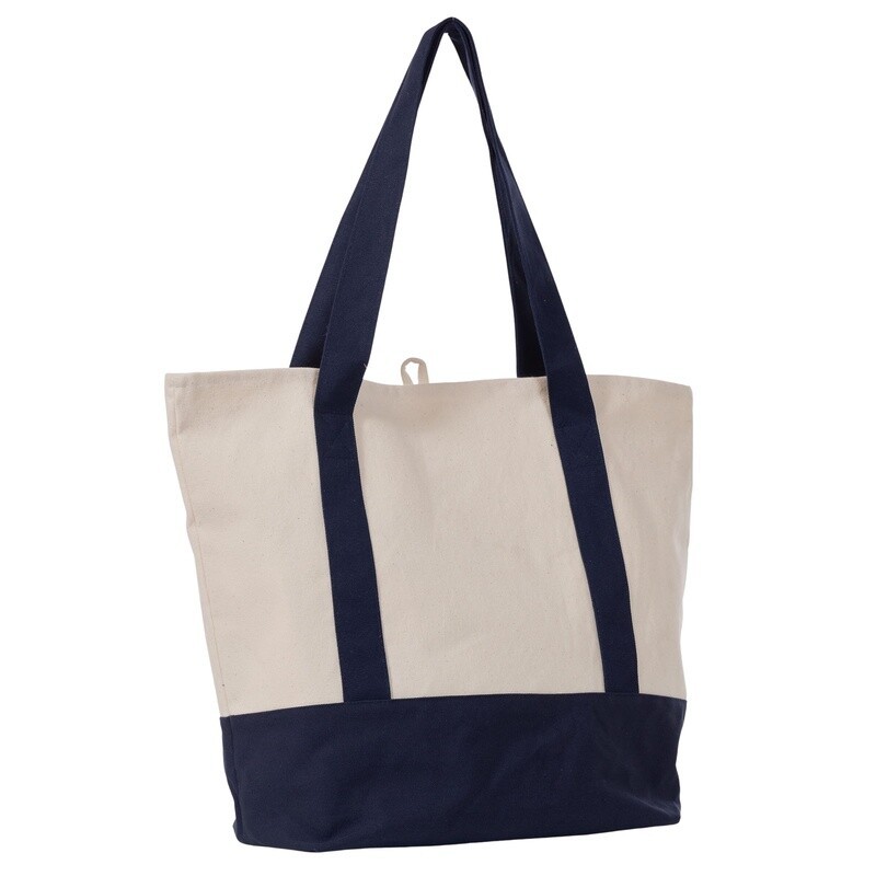 Trader Joes Heavy Duty Blue Cream Canvas Eco Tote Bag Large Reusable