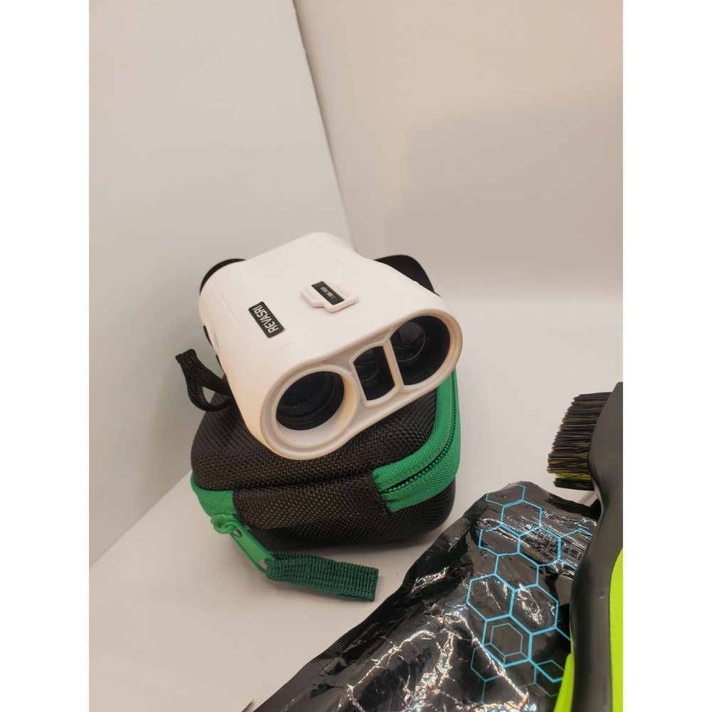 REVASRI Golf Rangefinder with Slope and Flagpole Lock Vibration, External Slope Switch for Golf Tournament Legal, Rangefinders with Rechargeable Battery 600/1000YDS Laser Range Finder in Meters and Yards. I don't know for certain this item has never been used. I cannot find any damage and it has all paperwork. It comes with a case. It looks to be un-used. It was obtained in a closeout bundle of New Un-used items. The case has a mark on it. Also, I have included a Withlin golf club cleaning tool.