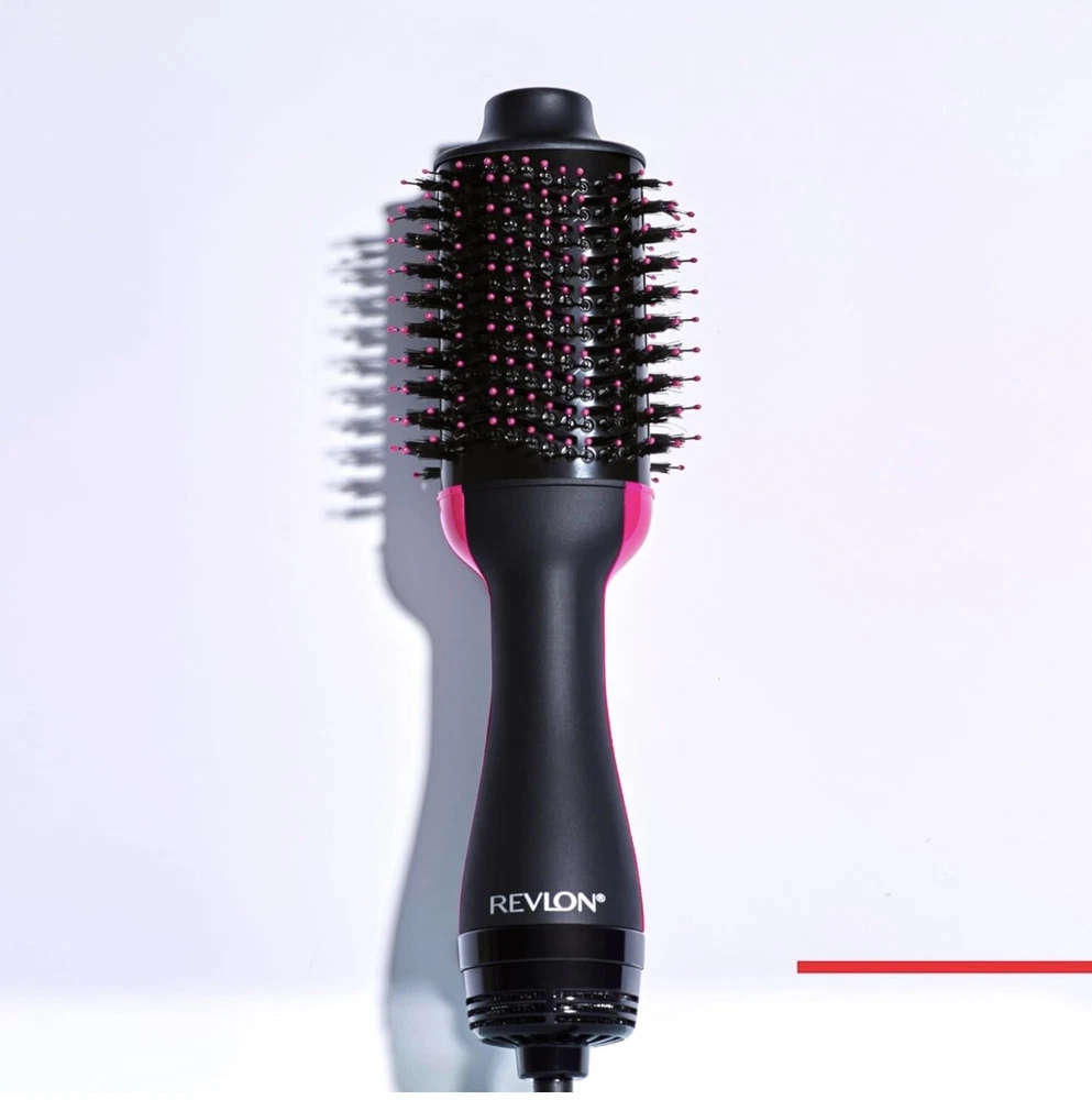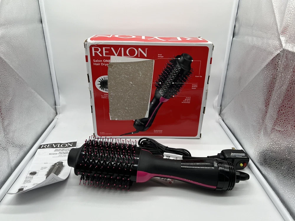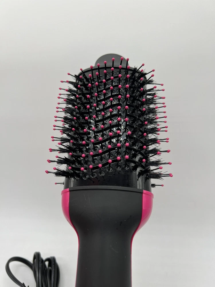 Revlon One-Step Hair Dryer Brush and Volumizer Oval Pink Black. Used, tested it works, still in good condition. Item: P4(17) VOTED “BEST BLOW-DRY BRUSH”: Simplify your getting-ready routine with this fan favorite. TWO-IN-ONE TOOL: Dry and style in up to half the time* and get that just-left-the-salon feeling without leaving home. 2.8” BRUSH: Styles all hair types and lengths, its wide surface area is great for long hair. SALON-STYLE BLOWOUTS: Get shine, tons of volume and a smooth finish, plus create soft waves and body. THREE HEAT/SPEED SETTINGS: Choose from cool, low or high to dry and style with up to 50% less heat exposure for less damage.