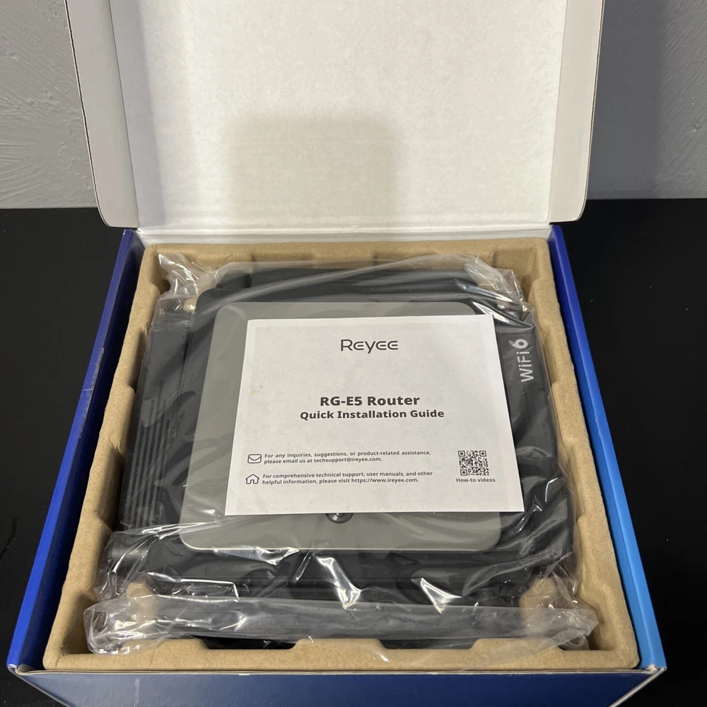 Introducing the Reyee RG-E5 WiFi 6 AX3200 Dual-Band Gigabit Mesh Router, the perfect addition to any home networking setup. This high-speed internet router boasts a range of features including dual-band and gigabit Ethernet ports for fast internet speeds. The Reyee RG-E5 is designed for optimal performance and reliability, making it an excellent choice for anyone in need of a reliable internet router. With its sleek design and advanced technology, the Reyee RG-E5 is a must-have for anyone looking to upgrade their home networking setup. Whether you're a casual internet user or a heavy gamer, this router is sure to provide you with fast and reliable internet speeds. So why wait? Order your Reyee RG-E5 today and experience the difference for yourself!