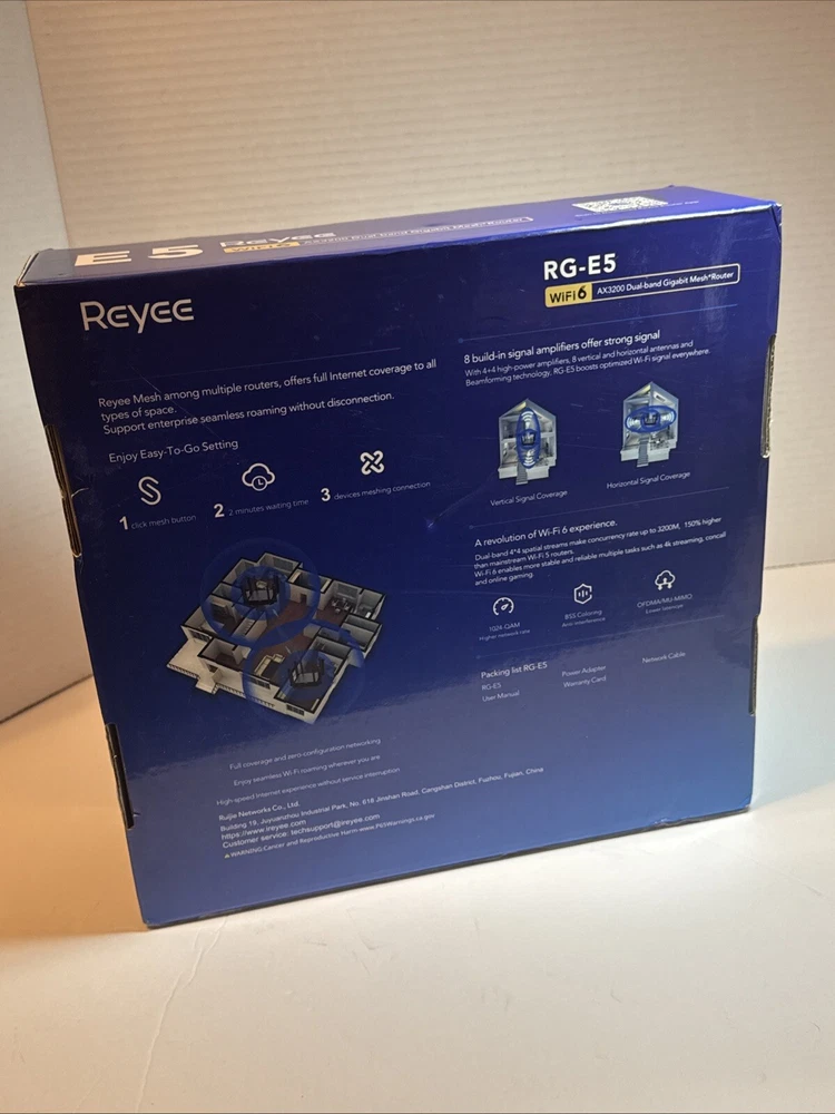 Introducing the Reyee RG-E5 WiFi 6 AX3200 Dual-Band Gigabit Mesh Router, a high-performance router designed to provide reliable and fast internet connection. This router comes in an open box and supports dual-band connectivity, allowing you to connect to the internet through two different frequencies. With a brand name like Gigabit, you can be sure that this router is designed for high-speed internet. It features a number of different aspects, including a type of router, model number, and several different features. This router is perfect for anyone looking to upgrade their home networking setup and enjoy faster internet speeds.