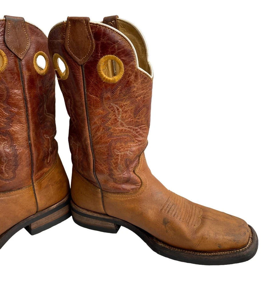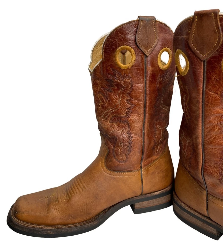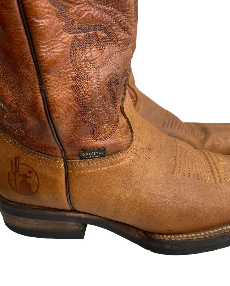 Reyme Square Toe Leather Embroidered Western Cowboy Boots Men's Mexico 27 USA 8