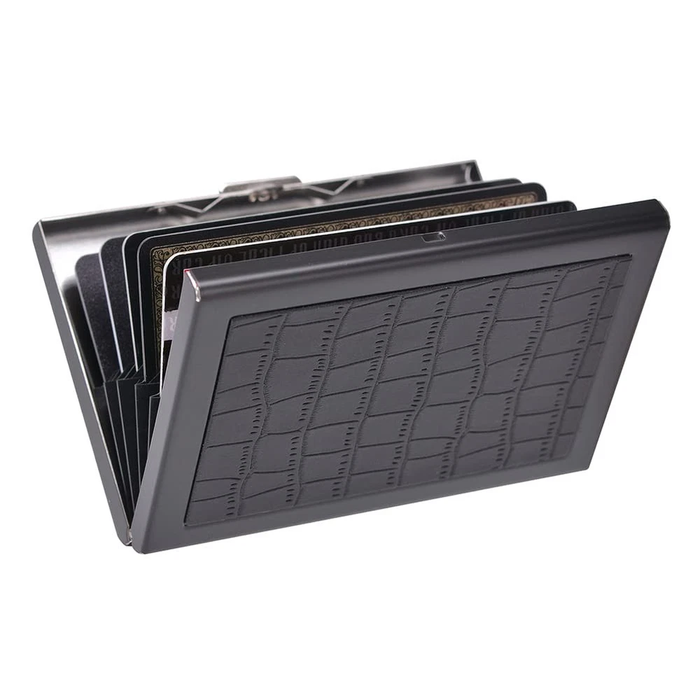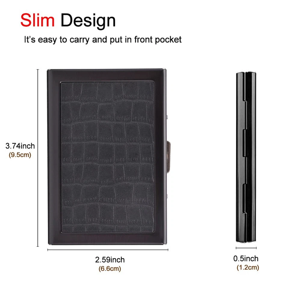 1.SLIM & RFID DESIGN:Easy to carry and put the card holder in any pocket. RFID blocking signals business card holder can protect your credit card wallet from unauthorized scanning. 2.SIZE: Mini size(3.74" x 2.59" x 0.5"), Light weight(0.2LB), 6 card slots, designed to hold credit card, debit card, id card, gift card, business card, ATM card, cash etc. 3.MATERIAL: This small card case is made of stainless steel + PU leather,more stronger and durable than plastic or aluminum item. 4.QUICK ACCESS: The accordion card slots design let you see the cards clearly and easy to take out & put in. 5.PERFECT GIFT: This metal card wallet is packed with individual box, It is a perfect gift for men and women. Not only can be used for yourself, but also it is the wondeful birthday gift for father mother grandfather daughter and friends.