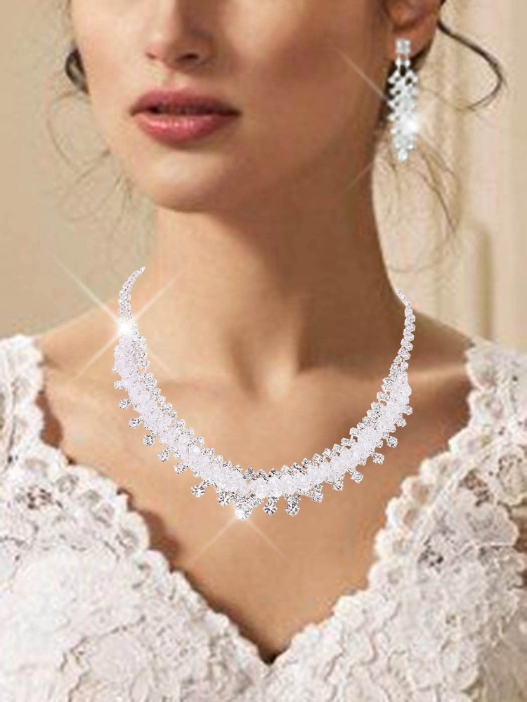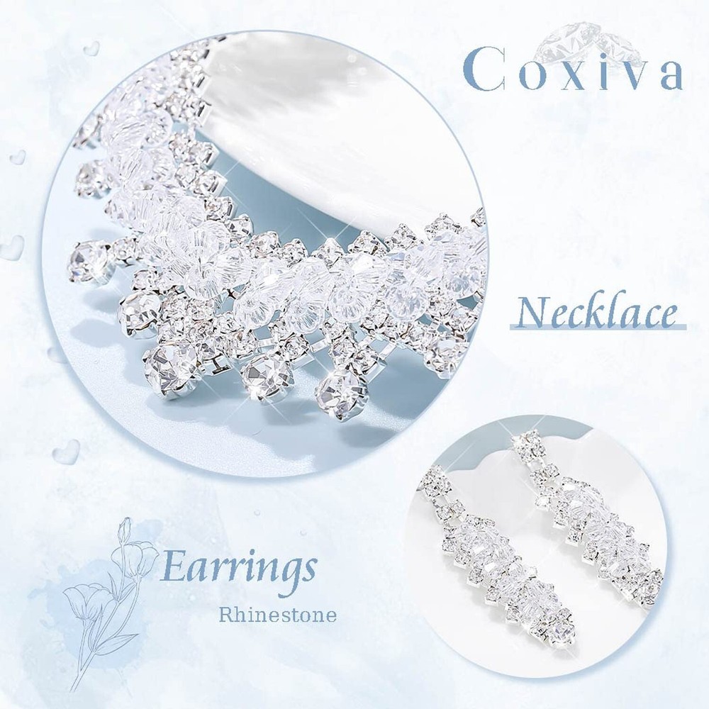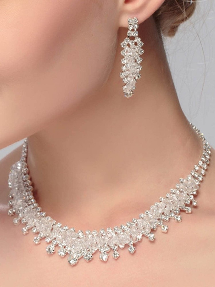 Rhinestone Crystal Necklace and Earrings Set Silver Prom Jewelry for Women