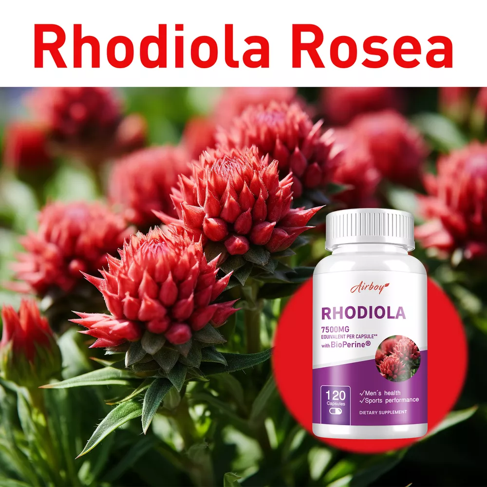 Effects: Energy & Endurance, Men's Health, Testosterone Booster Ingredients: Rhodiala Root Directions: Take 2 capsules once daily after a meal. Shipping: Ships within 48 hours on working days. Shelf life: 2 years Description: Relieve Stress and Boost Your Mood - Are you feeling brain fog, stressed, or exhausted? Rhodiola helps you fight the fog while leaving you relaxed and ready to take on your day. Whether you're having a busy day at the office, classroom, or home, Rhodiola can relax your mind while improving your focus, clarity, and mood. Boost Energy and Endurance - Looking for a clean boost of energy and mood? Our pure Rhodiola helps you stay focused and alert throughout the day so you can stay motivated, excel, and win the day. Rhodiola boosts immune support and defenses, stabilizing and maintaining your body and overall health to help you live a balanced, healthy life. Vegetarian & Non-GMO - Rhodiola is vegan, non-GMO, and gluten-free. Document