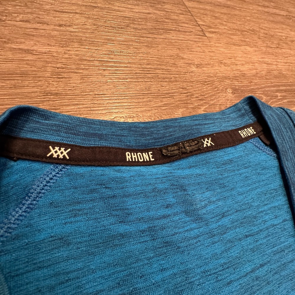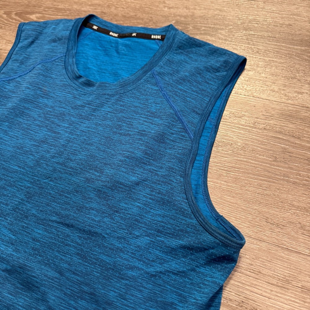 Fabric Type: Knit Style: Basic Country/Region of Manufacture: China Fabric Wash: Dark Material: Polyester, Elastane Personalize: No Brand: Rhone Season: Fall, Spring, Summer Size Type: Regular Fit: Athletic Handmade: No MPN: 100002 Garment Care: Machine Washable Size: M gtin13: Does not apply Performance/Activity: Gym & Training, Running & Jogging, Walking, Weightlifting, Yoga Sleeve Length: Sleeveless Compression Level: Mild Theme: Beach, Designer, Logo, Sports, Workout, Exercise, Gym, Running Features: Breathable, Easy Care, Lightweight, Moisture Wicking, Stretch, Tagless Occasion: Activewear, Casual, Travel UPC: Does not apply Type: Tank Accents: Logo Vintage: No Model: Rhone Performance Tank Top Closure: Pullover Graphic Print: No Department: Men Color: Blue Neckline: Crew Neck Pattern: Solid