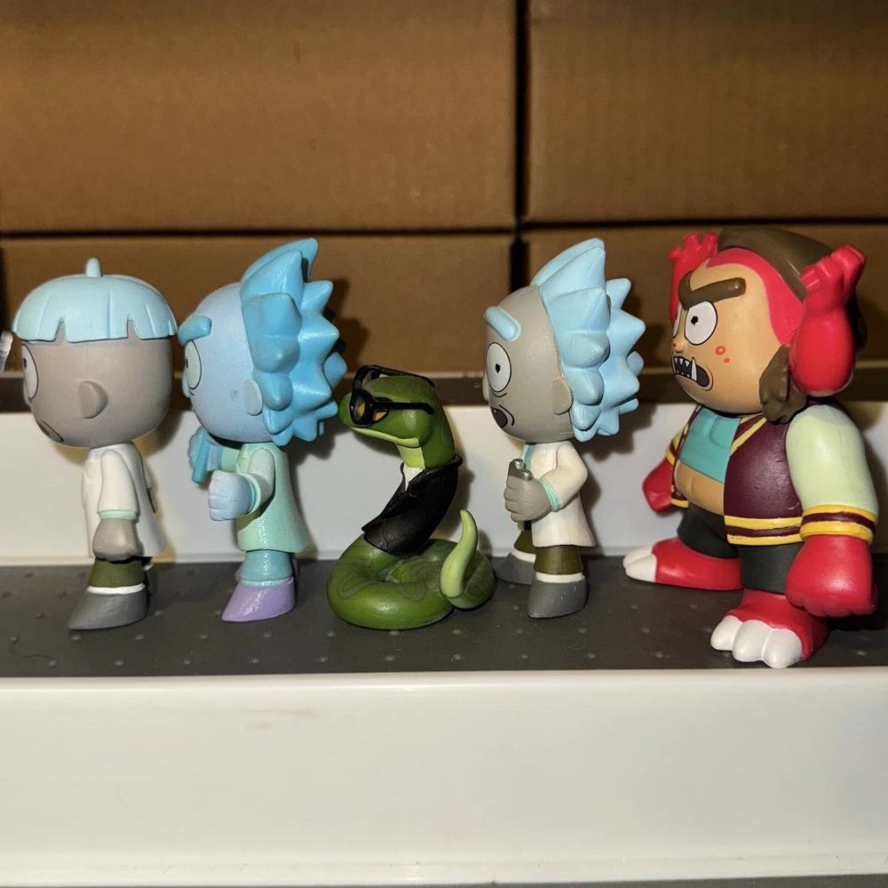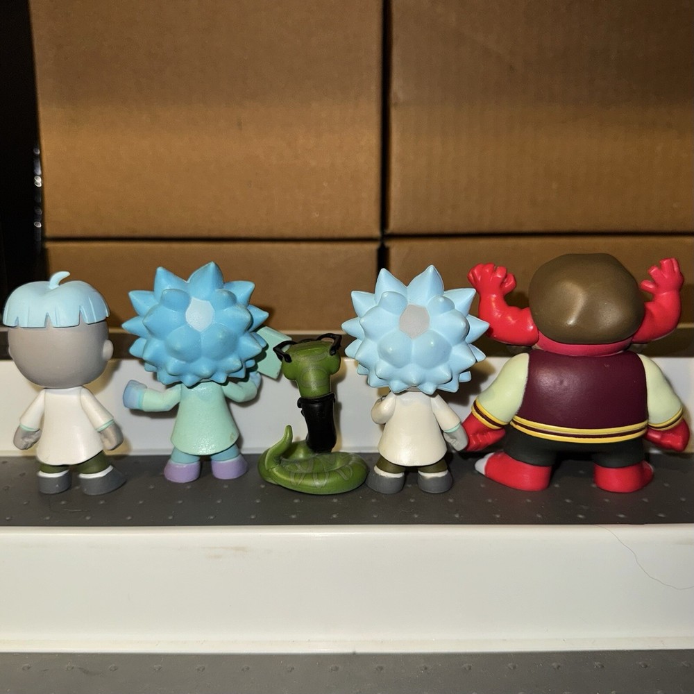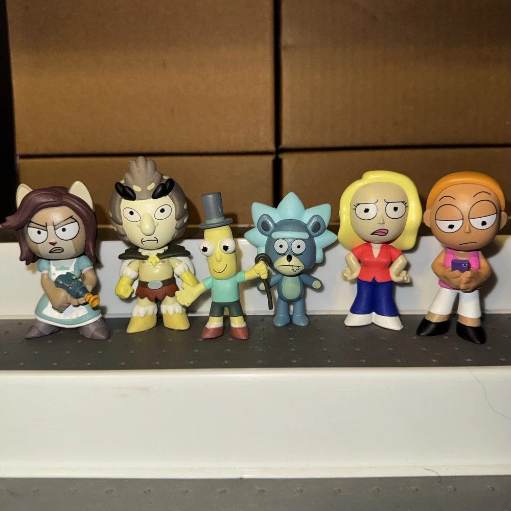 I can sell separately, message me for separate pricing This lot includes 11 Rick and Morty Funko Mystery Minis Included are: 1/6 Mr. PBH 1/6 Teddy Rick 1/12 Summer 1/12 Beth 1/12 Arthricia 1/12 Bird Person 1/24 Doofus Rick 1/24 Morty Jr. 1/12 Drunk Rick with Flask Target Exclusive 1/12 Glow Hologram Rick GameStop Exclusive 1/24 Asher Hess GameStop Exclusive Figures are in good condition, each will be individually bagged for protection. Figures may have minor imperfections such as scratches or blemishes Will ship with care If you have any questions please ask me! :)