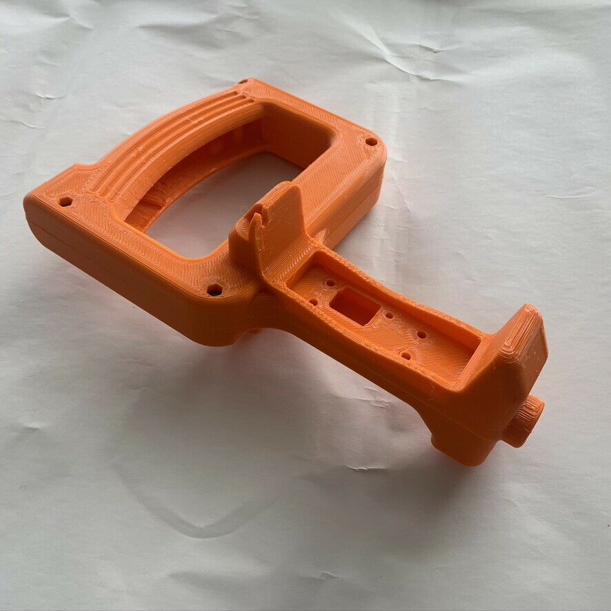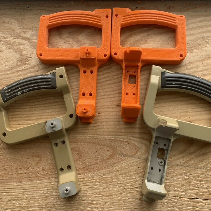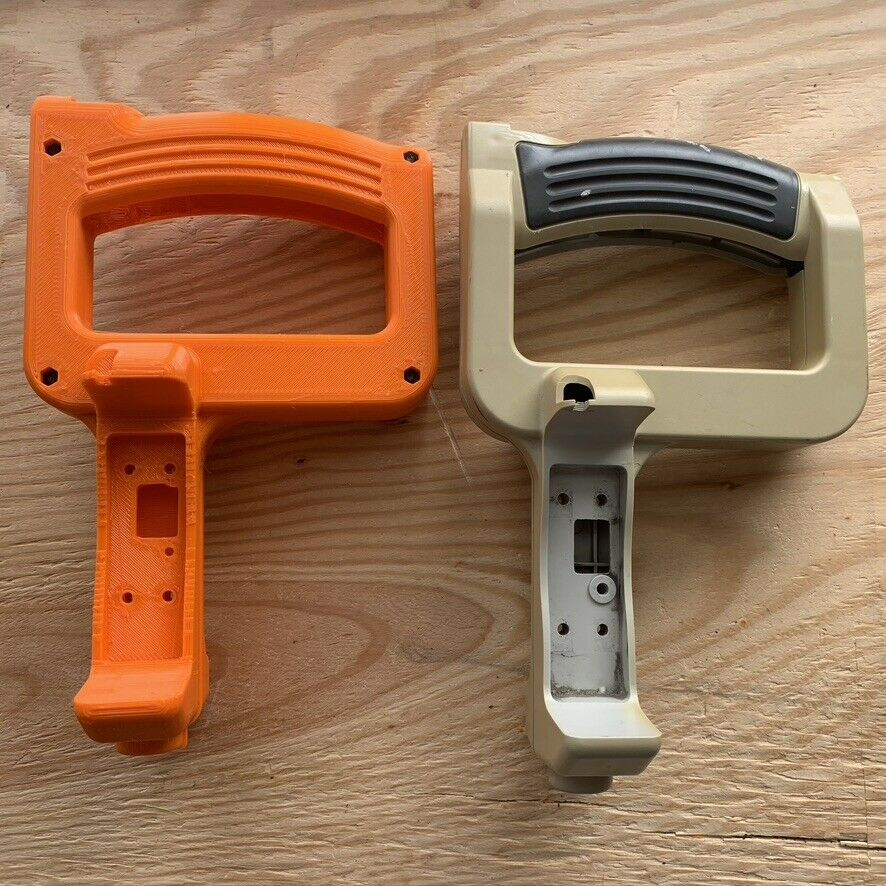 Ridgid Miter Saw Handle Upper and Lower for MS1250 and MS1250LZ 828056 (lower) and 828062 (upper) This is a 3d redesigned and 3d printed solution for broken Ridgid Miter Saw Handle Upper and Lower for MS1250LZ1 - 828056 (lower) and 828062 (upper). The only difference is that the handle has been redesigned internally to be exceptionally stronger than the original handle that was prone to breaking and cracking under minor stress. Note this only the plastic handle housing and does not include any of the other internal components such as the switch or springs. These handles use an M4 nut and bolt to secure the two halves together and you will need a metric Allen / Hex bit to assemble. 3d printing is an additive manufacturing technology that in this case uses PETG filament (stronger and higher degree of durability and resistance to outside conditions) but instead of injection molding, 3d printing offers a stronger internal structure since this handle specifically is made up of over 500 layers of alternating infilled patterns made of honeycomb shape. I am usually able to ship same day, but I have a few days for handling on here in case I run a little behind and have to print more. Please note that as this is 3d printed these handles take about 18hrs to print and I do my best to clean support material and minor defects so please be patient with me if I miss any defects and I'll do my best to help you with any issues if they arise. So far over 200 happy customers with new 3d printed handles on their miter saws! Here's a link to a YouTube video where the switch is replaced and essentially the handle and internals on a similar model: https://www.youtube.com/watch?v=f4OLmpzj3Zw Happy woodworking!