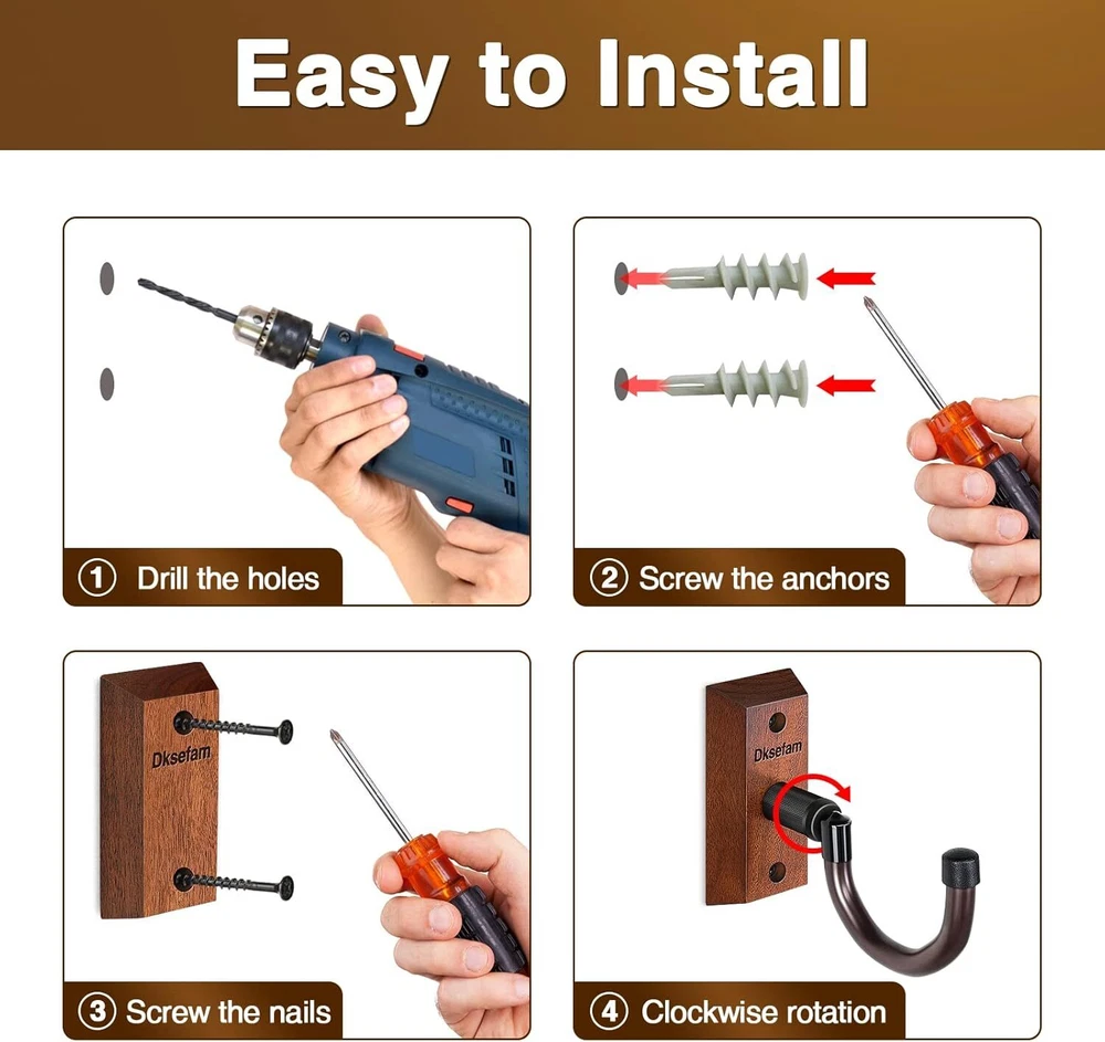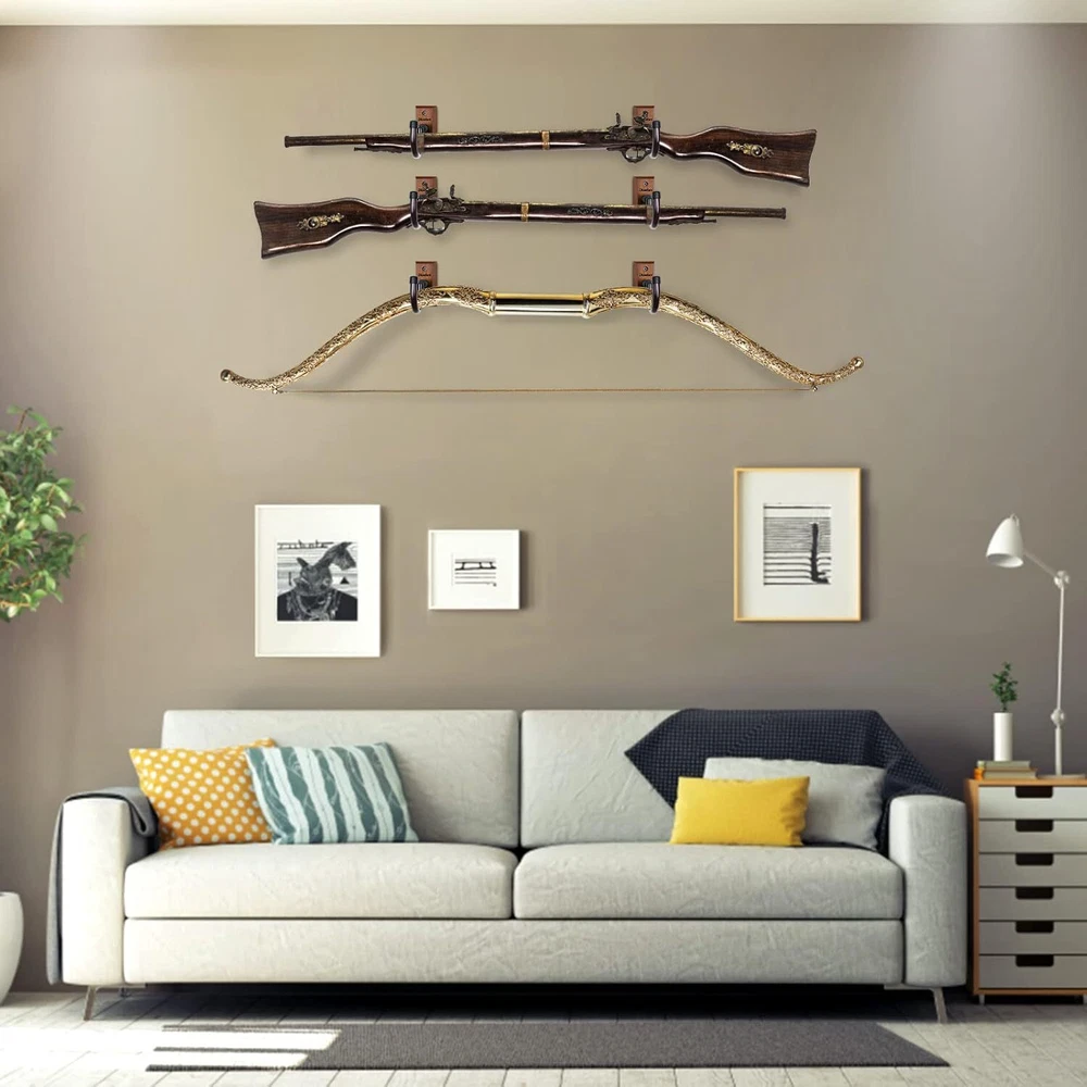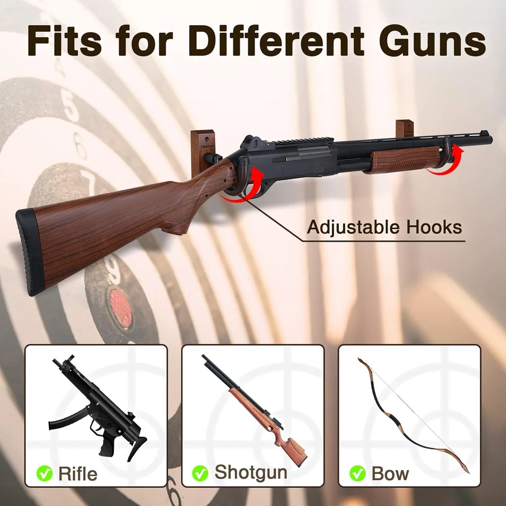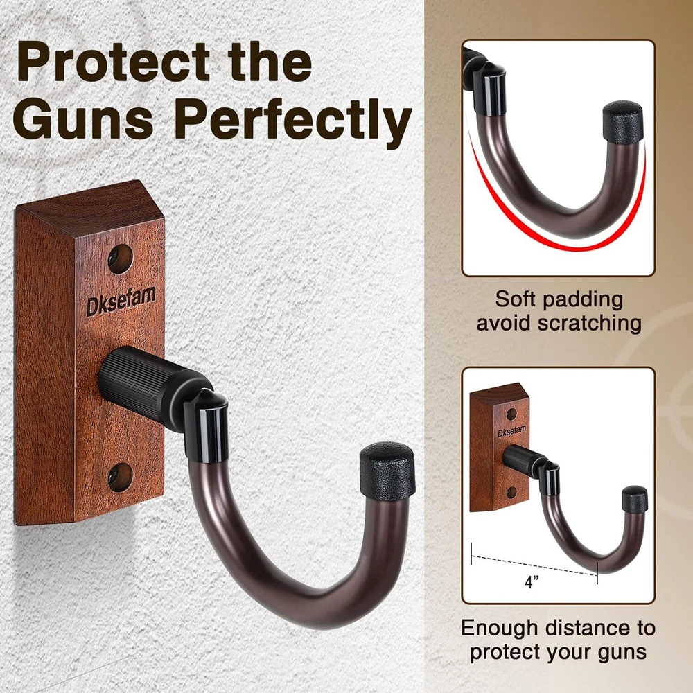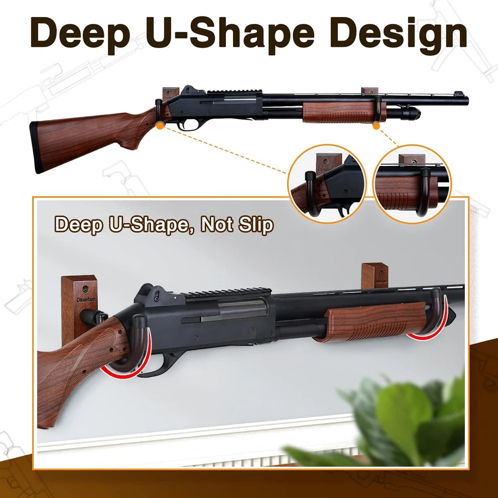 Real Hardwood Gun Racks for Wall: It is made of real hardwood with unique wood grain and excellent quality. Each indoor rifle wall mount are carefully crafted by hand and polished by the carpenter to preserve the unique texture of the wood. It can also be great for decorating a room. You can use the gun hanger wall mount in the bedroom, living room, store room, or above the door for displaying your guns. It will make your room special Fit for Different Guns: Wall hanging gun mount designs humanization, in order to fit for different guns. The gun display wall mount can adjustable to allow you to hang your gun easily, it is suitable for accurately placing a wide or narrow body gun as needed. Don't worry about putting the gun on the wall mount gun rack. It fits your gun Deep U Design: Compared with the traditional gun wall rack, our gun wall mount display adopts the deep u design in the hook part, which can hold the gun firmly without the danger of slipping. You can place your gun horizontal on the gun hanger,The metal hook has a soft padding on it, which adds friction and prevents your gun from getting damaged. Don't worry about hanging your gun on this gun holder for wall Easy Installation: The package comes with two long screws, sturdy drywall anchors and installation instructions for simple mounting to a variety of walls. We provide instructions to help you, you just need to assemble the hardwood and hook, and then screw the gun hooks for wall to the wall, this process only takes you 2 minutes Gun Protection: The high-quality steel gun wall mount display are covered with soft padding. The yoke has a smooth and graceful surface and two protective caps are added to the top. And gun rack wall mount increases the distance between the hardwood base and the metal hook, preventing friction between the gun and the wall