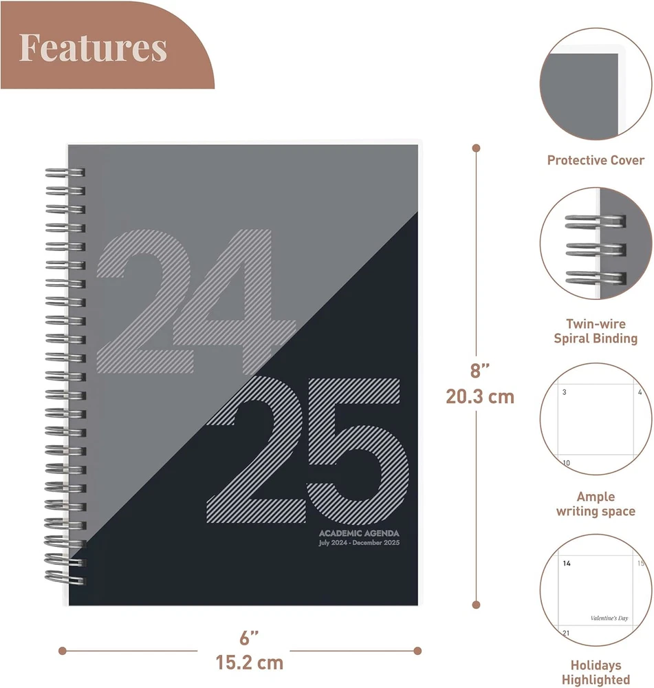 Fast Shipping Great Customer Support Satisfaction Guaranteed DESCRIPTION Shipping Shipping Shipping All domestic packages are shipped for Free (Unless other shipping method was selected during the checkout) Most items ship and arrive much sooner than the estimate delivery date. Usually within 2-3 days from payment. However, we have longer estimates to compensate for the occasional delay or supply chain breakdown. We do not accept P.O. BOXES - PLEASE PROVIDE A PHYSICAL ADDRESS Return Return Return In the event that you would like to return your purchase, we allow returns that are processed within the defined return date (the return date is to be found in the return policy/shipping and handling section) Please contact us for a return authorization and the return shipping address. Payment Payment Payment PayPal is our preferred method of payments it's the quickest, easiest and most secure way to pay for your goods or services online. PayPal offers buyer and seller protection should there be a problem. If you do not have a PayPal account, to get started and buy your first item with us is very easy. Simply click on the 'Buy It Now' button and follow the eBay checkout steps. Select PayPal as the payment method you then will be given the chance to enter your card details in to PayPal's secure checkout in order to pay for your order. Once the payment has been made, you will then be given the opportunity to make your own PayPal account to make paying for your items in the future very easy. Should there be a problem with payment please do let us know. Feedback Feedback Feedback Customer satisfaction is very important to us. If you have any problem with your order,please contact us and we will do our best to make you satisfied, please do not leave a negative feedback before we resolve your problem. We guarantee that your issue will be solved quickly. As long as you are happy with your purchase of , please leave us a positive feedback. Your feedback is very important to us it affects our search placement on eBay. We will leave a positive feedback for you in return automatically once we receive your feedback. Contact Us Contact Us Contact Us If you have any queries, please contact us via ebay. We usually respond within 24 hours on weekdays. Thank you for visiting our ebay store! GEOGRAPHIC WEEKLY AND MONTHLY LAYOUT: The planner features a unique geographic-themed layout with weekly and monthly sections. It provides an intuitive view of your schedule, allowing you to easily plan and manage your academic and personal activities. ACADEMIC YEAR DURATION: The planner covers an extended period from July 2024 to December 2025, providing 18 months of planning. It aligns perfectly with the academic year, making it ideal for students, teachers, and professionals who follow an academic schedule. AMPLE SPACE - Each planner notebook has a monthly and weekly two-page spread with plenty of space to jot down your appointments, plans and to-do’s. The organizer was made to be used in many different places; the classroom, home, or office. Built with high quality materials and twin-wire binding, easily flip the notebook to Today and start planning! HOLIDAYS, NOTES & EXTRAS - Holidays are noted, so keep on top of your special dates and dream vacations. At the front is a 3-Year reference page, while at the back has Notes pages to jot down any notes throughout the year. Not only that, each weekly spread has the current and succeeding month at-a-glance! All you need to get organized. SIZE AND COLOR OPTIONS: Riley's planner is available in two convenient sizes: 8 x 6 inches and 8.5 x 11 inches. You can choose the size that suits your preferences and needs, whether you prefer a compact and portable planner or a larger one for more detailed planning. The planner is offered in three attractive colors: Green, Blue, and Black. You can select the color that resonates with your style and personal aesthetic. Rileys 18-Month Academic Planner 2024-2025 - Weekly & Monthly Agenda 8x6 inch Click here to see description Fast Shipping Great Customer Support Satisfaction Guaranteed DESCRIPTION Shipping All domestic packages are shipped for Free (Unless other shipping method was selected during the checkout) We ship within two business days of payment, usually sooner Standard FREE shipping takes between 3-5 business days Expedited shipping takes between 2-3 business days Overnight shipping takes between 1-2 business days We do not accept P.O. BOXES - PLEASE PROVIDE A PHYSICAL ADDRESS We Ship Globally using ebay's GSP, the item is sent to a logistic center in KY and shipped from there to the rest of the world. International customers are responsible for all duties and taxes Contact your local authority for questions related to the amount of duties or taxes you will be responsible for Return In the event that you would like to return your purchase, we allow returns that are processed within the defined return date (the return date is to be found in the return policy/shipping and handling section) Please contact us for a return authorization and the return shipping address. Please contact us for a Return Merchandise Authorization (RMA) number. We advise you to use a reputable carrier service when returning your goods. Please pack all returns appropriately. We ship globally Via eBay's global shipping program (GSP). Thus we don't cover returns for items shipped globally. Buyers returning such items will be refunded ONLY for the item's cost and not for the shipping. please check the Voltage information and make sure it matches the one in your country. In case it's not stated in the description, do ask us. Payment PayPal is our preferred method of payments it's the quickest, easiest and most secure way to pay for your goods or services online. PayPal offers buyer and seller protection should there be a problem. If you do not have a PayPal account, to get started and buy your first item with us is very easy. Simply click on the 'Buy It Now' button