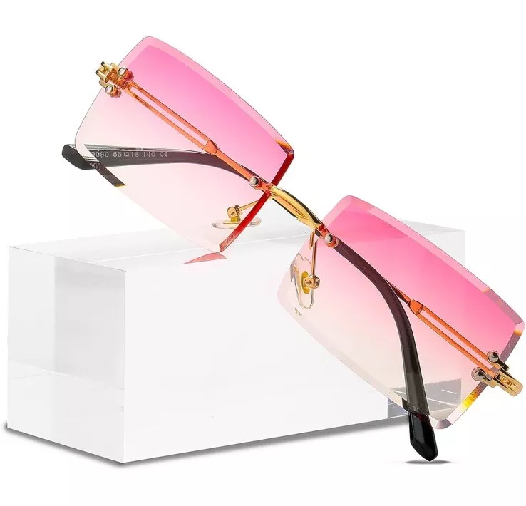 Rimless Rectangle Sunglasses Women Men Trendy Square Y2K Glasses Retro Frameless Eyewear Gradient Lens