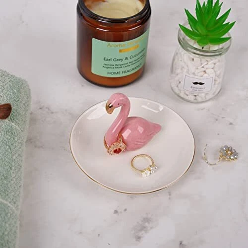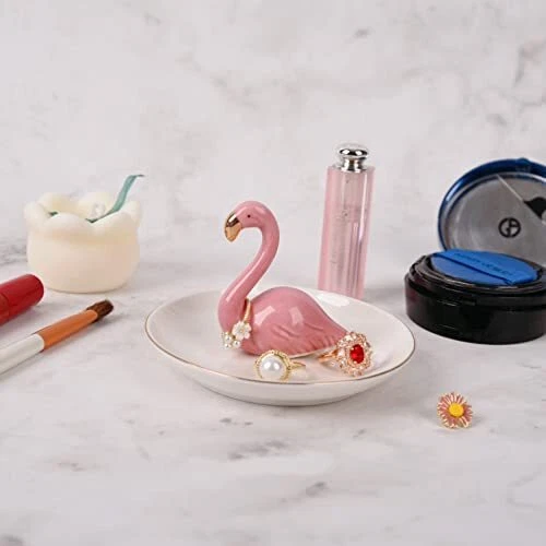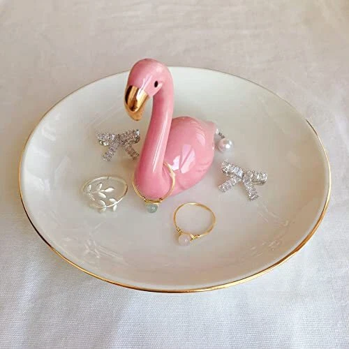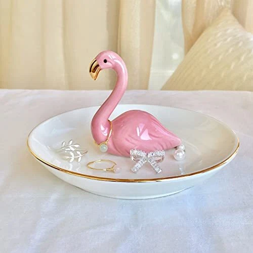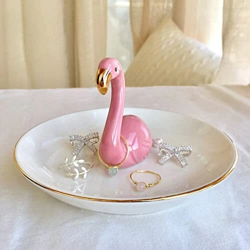 Menu 1. We require immediate payment. 2. We currently accept payment via eBay managed payments only. 3. Once payment is cleared, we will dispatch your shipment within 1-3 business days. Please refer to the "Shipping" tab for more information regarding shipping speed to your destination. Flamingo Ring Holder for Jewelry, Pink Room Decor Preppy, Flamingo Jewelry Holder for Women Teen Girls, Flamingo Gifts for Women Birthday Wedding Mother's Day Valentines Christmas, Gifts for Her Product description ??【JEWELRY HOLDER】Fun flamingo dish is perfect for the top of a dresser or night stand. Holds earrings, other jewelry, coins, or anything else that needs safekeeping. Rings can slide right onto the flamingo's neck! ??【SPECIFICATIONS】The ring holder made from ceramic, it's brightly painted in a lovely gloss finish. Dimensions of the ring holder is 4.3inch Width and 4inch Height. This ring holder can be placed on a bedside or by the bathroom sink and fit in anyw to usefully hold and store your rings. ???【WOMEN GIFTS】Featuring Electroplating flamingo on white dish a intimate and cute, useful gift for a lady. A great gift idea that does not need any occasion at all. Perfect gift for mother, girlfriend, daughter, friend, sister, colleague or any special person you can think of. Not just a ring holder dish, but also a beautiful home decor, they will appreciate your choice! ??【NO MORE TROUBLE】Too much jewelry and easy to lose is a big trouble for every lady, and this cute flamingo ring holder is a great way to showcase and organize your rings, necklace, hand chain, bracelets, earrings and other miscellaneous jewelry pieces, completely liberate you from this annoying trouble. ???【BUY WITH CONFIDENCE】Coming gift boxed, this item would make a great gift for a loved one as well! We will control every step of the process at the source of production to ensure the most perfect color purity. Also, you can rest assured that each cute ring holder will be well packed before delivery. PLEASE MESSAGE US IF YOU HAVE ANY OTHER QUESTIONS, AND MANY THANKS FOR READING ALL OF THIS. Copyright ©#. All Rights Reserved.