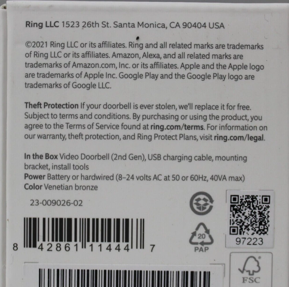 🔥NEW🔥 🔥FREE FAST SHIPPING🔥 ⭐️ Ring Video Doorbell – 1080p HD video, improved motion detection, easy installation – Venetian Bronze ⭐️ 🔥NEW🔥 🔥FREE FAST SHIPPING🔥 ⭐️ Description: 1080p HD video doorbell with enhanced features that let you see, hear, and speak to anyone from your phone, tablet, or PC. An update from the original Ring Video Doorbell, enjoy improved motion detection, privacy zones and audio privacy, and crisper night vision. Receive mobile notifications when anyone presses your doorbell or triggers your built-in motion sensors. Powered by the built-in rechargeable battery or connects to existing doorbell wires for constant power. Easily setup by connecting your Ring Video Doorbell to wifi through the Ring app and mounting with the included tools. With a Ring Protect Plan (subscription sold separately), record all your videos, review what you missed for up to 180 days, and share videos and photos. Pair with select Alexa-enabled devices to enable announcements and two-way talk for convenient in-home monitoring. With a Ring Protect plan (subscription sold separately), Alexa can also make voice announcements and automatically show live video feed on an Echo Show, Fire TV, or Fire Tablet when your Ring doorbell detects a person or package. Simple to set up and use Step 1 Follow the steps in the app to connect to wifi and adjust your settings. Step 2 Install the mounting bracket in your ideal location. Step 3 Click your Ring Video Doorbell into place. Now you’re ready to protect. Please Ask All Questions Before Purchase. All Items Are 100% AUTHENTIC/GENUINE -If you are looking for a different model, please ask we might have a unit in the warehouse. THANK YOU AND BUY WITH CONFIDENCE.