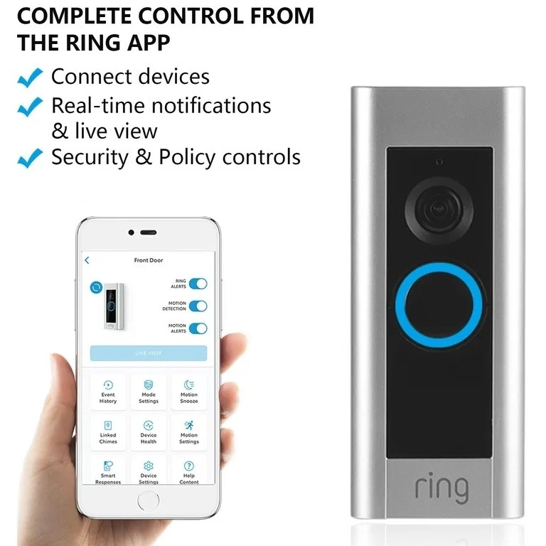 Connectivity:WirelessSmart Home Protocol:Wi-FiFeatures:Microphone, Night Vision, Streaming Video, Video Recording, Motion Activated, Built-in Microphone, Water ResistantNumber of Batteries:1Color:MulticolorStyle:ModernView:180-DegreeShape:RectangleModel:Video Doorbell ProButton Shape:RoundSmart Home Compatibility:Alexa, Google Assistant, Amazon Alexa, Google HomeMaterial:Aluminum, PlasticPower Source:Wi-Fi, HardwiredBrand:RingMPN:88LP000CH000UPC:0852239005208Suitable For:Shop, School, HomeType:Cameragtin13:0852239005208Items Included:Video Doorbell