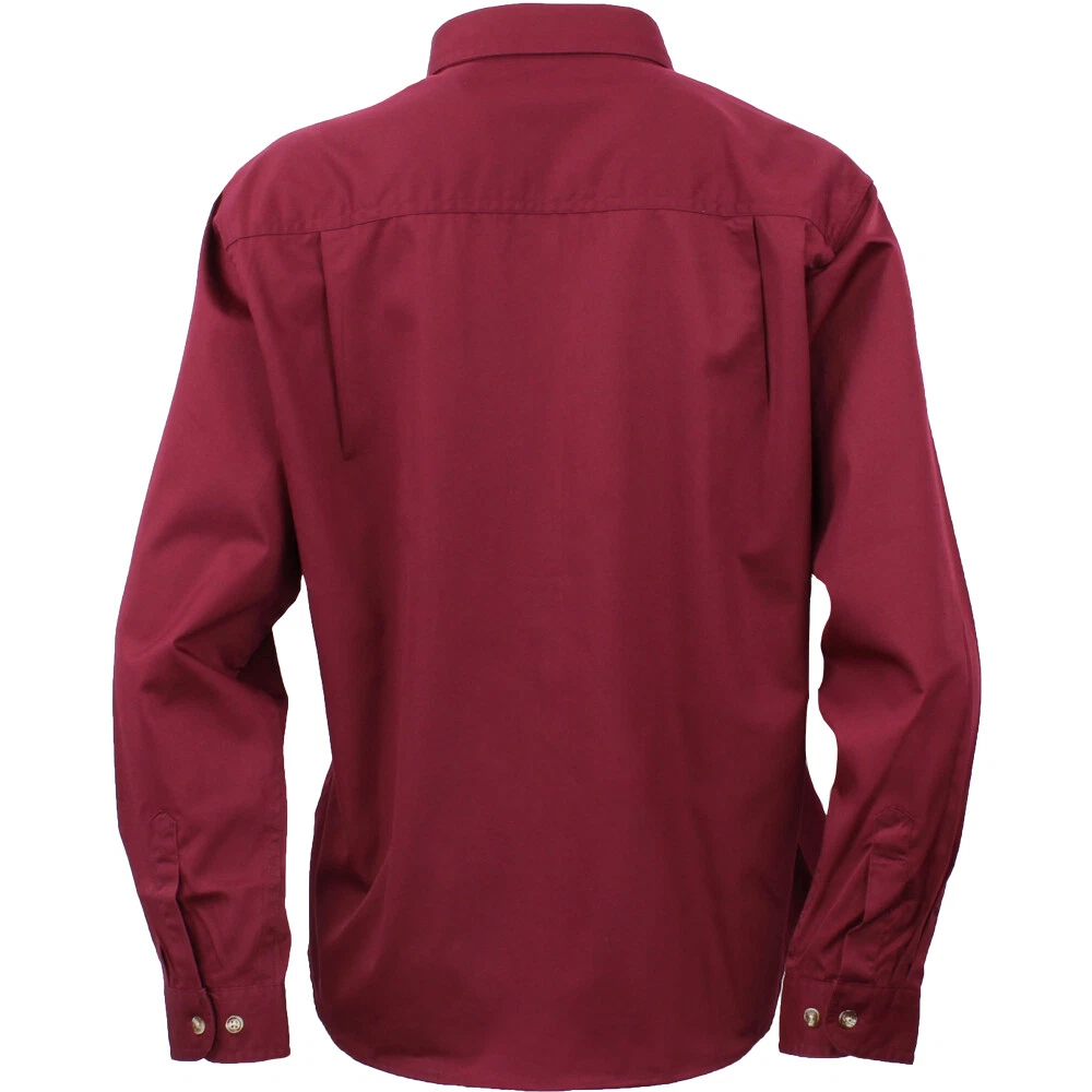 EZCare Woven Long Sleeve Button Up Shirt 635-WN Product Details Care Blend Of Preshrunk 65% Polyester/ 35% Cotton Twill Back Shoulder Pleats 2-Button Adjustable Cuffs Styled For A Feminine Fit With Tapered Waist A Must-have For Casual And Work Wardrobe- Wear It To Work Or On The Weekends, Either Way, You’re Sure To Get Many Wear Out Of This Timeless Piece Additional Details Color: Red Occasion: Casual Gender: Womens Age: Adult Brand: River's End