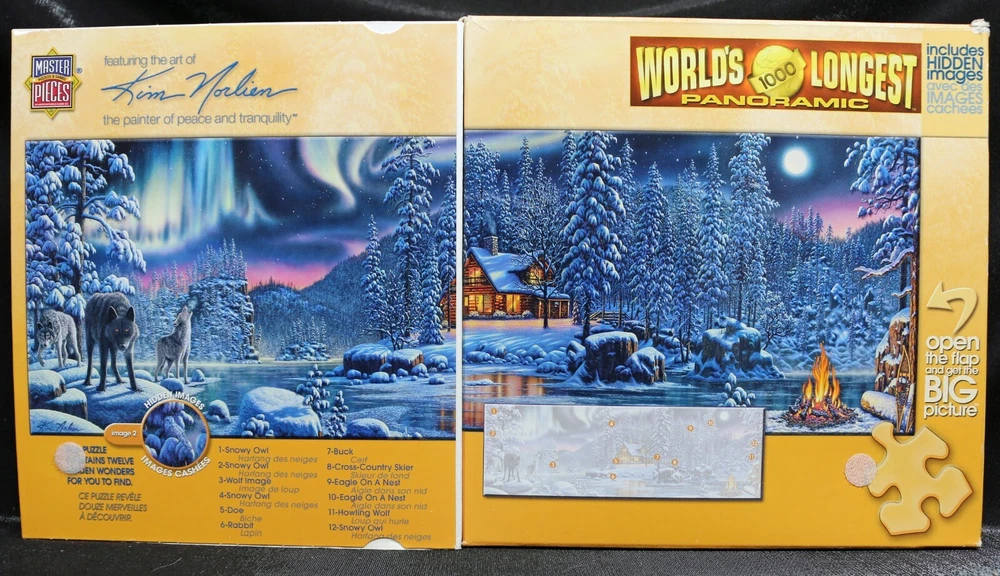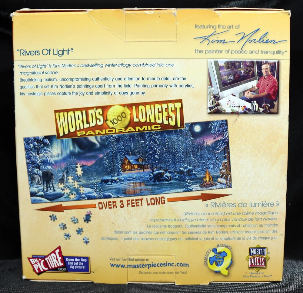 Immerse yourself in the beauty of nature with this Rivers Of Light jigsaw puzzle by artist Kim Norlien. Featuring a stunning an enchanting landscape, this puzzle is perfect for any puzzle enthusiast who appreciates the beauty of art. With 1000 pieces, this puzzle is sure to provide hours of entertainment and challenge your problem-solving skills. Crafted from high-quality cardboard, this puzzle is both durable and comes from a smoke-free home, making it a great addition to any household. The interlocking pieces fit together perfectly to form a cohesive image, and the multi-color landscape is sure to captivate anyone who sees it. Perfect for ages 10 and up, this puzzle is a must-have for any puzzle collection. Doing puzzles has some hidden benefits Excellent qualities : Cultivate concentration, patience, and temper your will Movement development : Train hand-eye coordination and precise small movements Spatial intelligence : Improve visual discrimination of colors and shapes Critical thinking ability : Understand the relationship between parts and the whole, and draw inferences from one example to explore the future Relaxes your mind : Relieve work pressure and release yourself Brain development : Enhance memory and may help prevent or slow brain degeneration * We did not work the puzzle or count the pieces, but we verify the number count at your request . Puzzle pieces are all bagged. Each item we ship is carefully packaged to prevent any damage and is shipped immediately with tracking. Anticipated Benefits of Puzzles for Children Overcoming attention deficit Strengthening visual memory Improving problem solving skills Strengthening hand-eye coordination Improve fine motor skills Improve gross motor skills Shape recognition ability Gain the ability of setting goals Learning patience