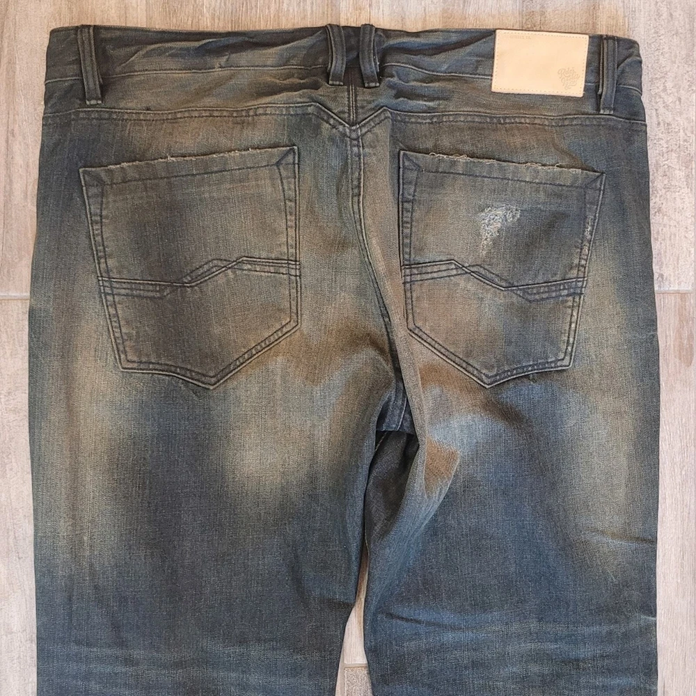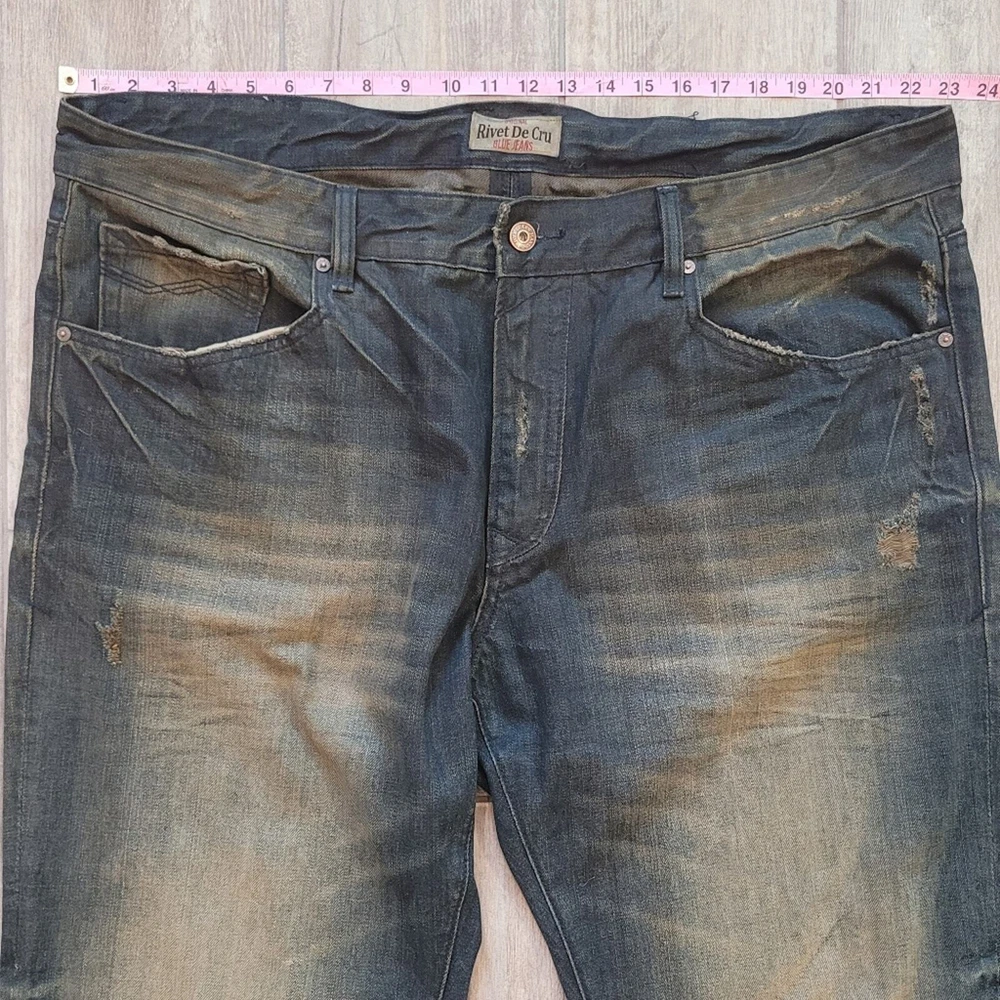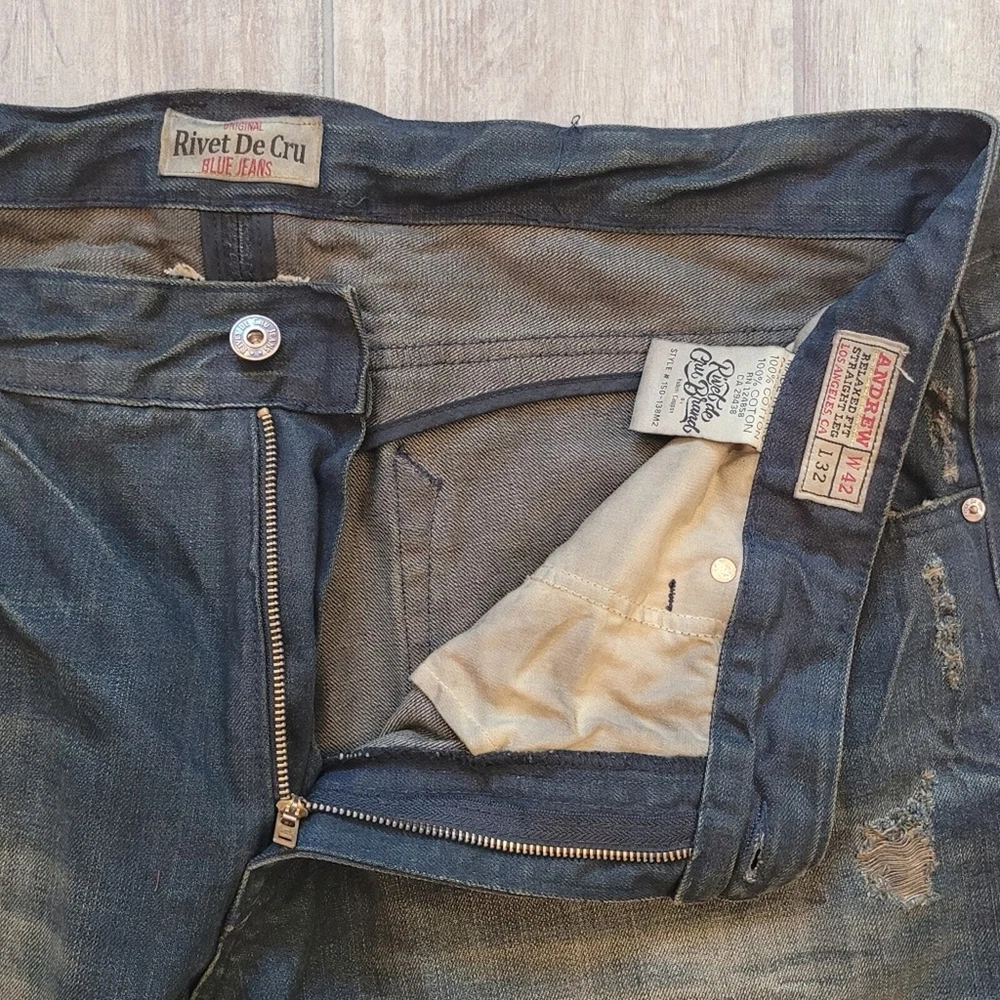 Rivet De Cru Jeans Men's Size 42/32 Andrew Relaxed Fit Straight Leg Distressed Measurements are included in the photos Elevate your denim game with these Rivet De Cru Jeans in Andrew style. With a relaxed fit and straight leg design, these jeans are perfect for any casual occasion Distressed Faded, Whiskered Crafted from high-quality materials, these jeans are durable and made to last. Ideal for men who appreciate classic style with a modern twist, these jeans are perfect for pairing with your favorite sneakers or dress shoes Sold at the Buckle & other retailers Excellent pre-owned condition Bundle for a discount, or send an offer