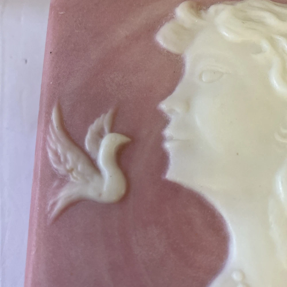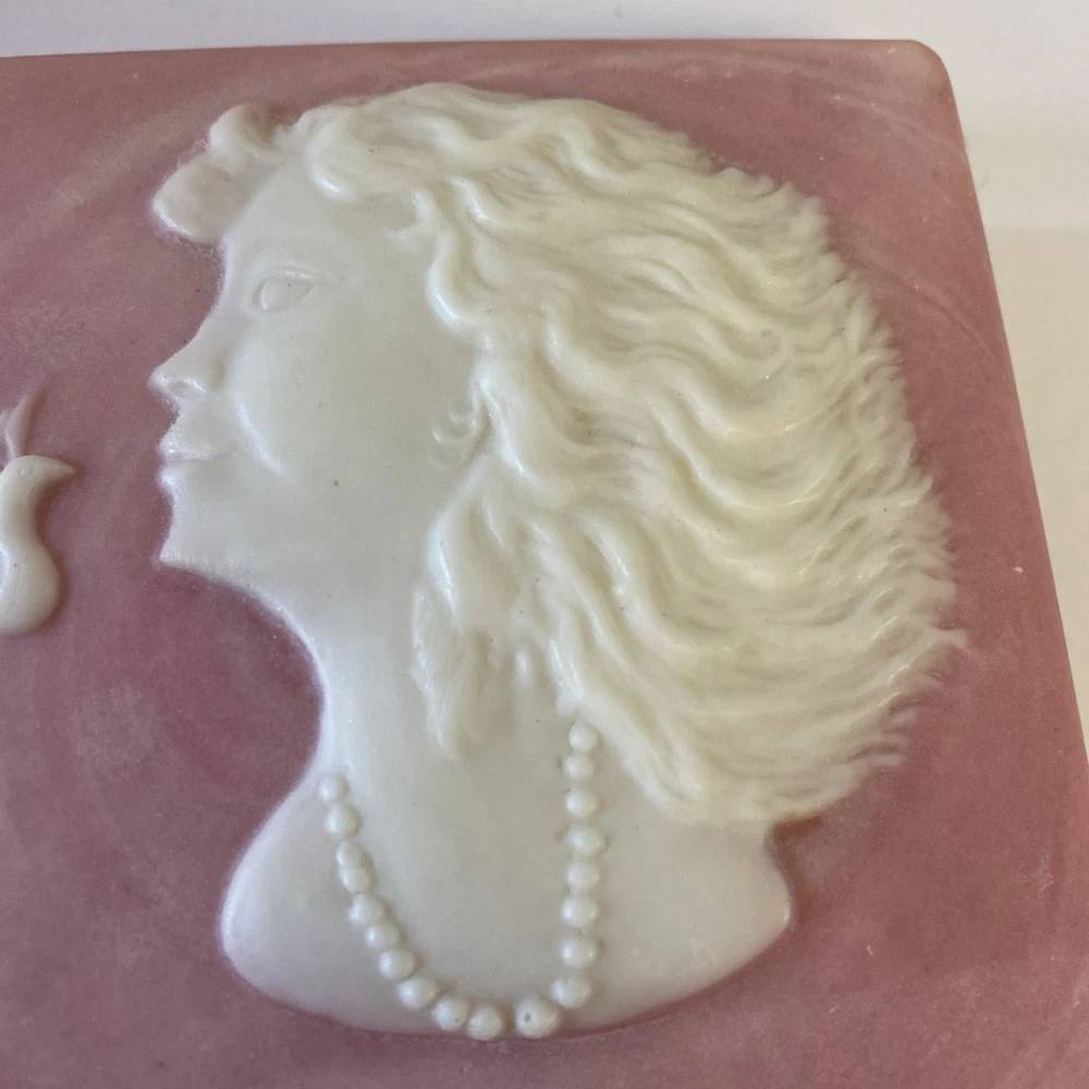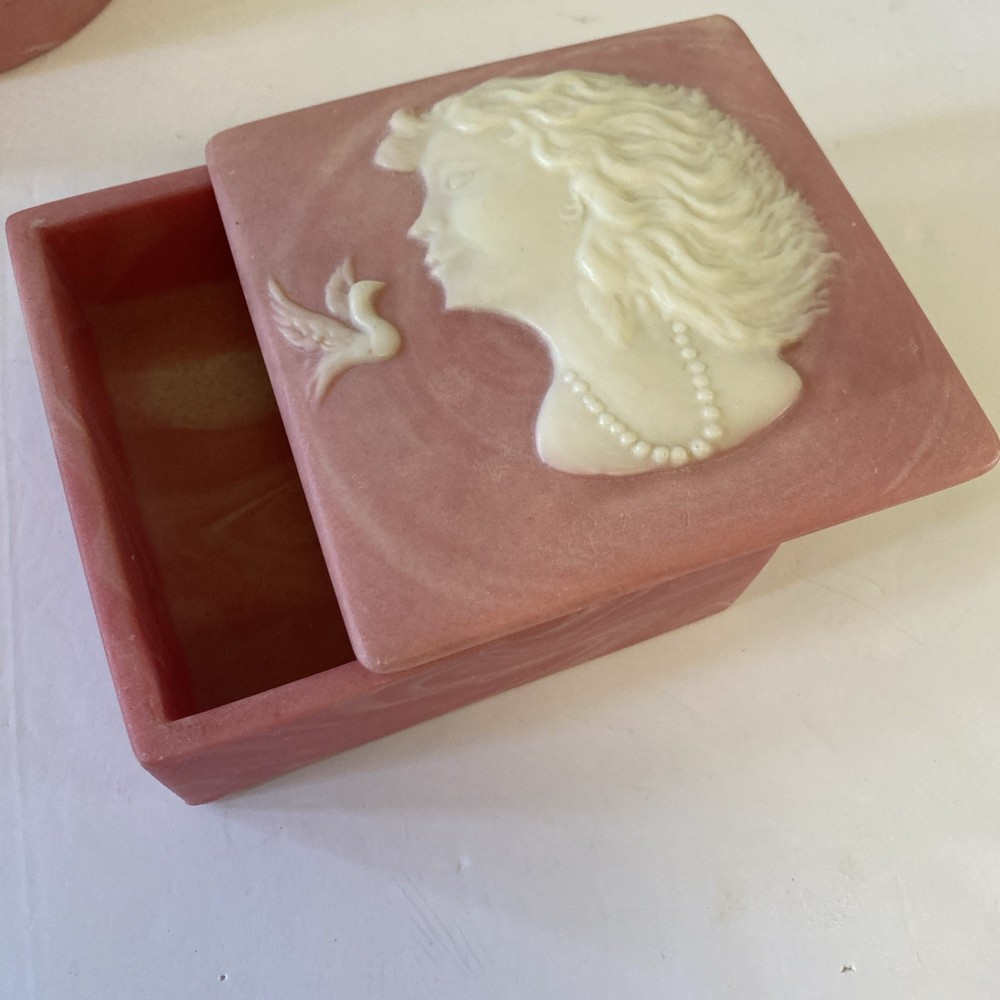 The Robert Nemith Pink Trinket Box featuring a woman with a bird design is a medium-sized square-shaped collectible from the Keepsake Boxes collection by Design Gifts International Inc. The pink color adds a feminine touch to this decorative trinket box, making it a unique and charming addition to any collection. The boxed packaging ensures it is protected and ready to be gifted or displayed with pride. Perfect for those who appreciate intricate details and elegant designs in their collectibles.