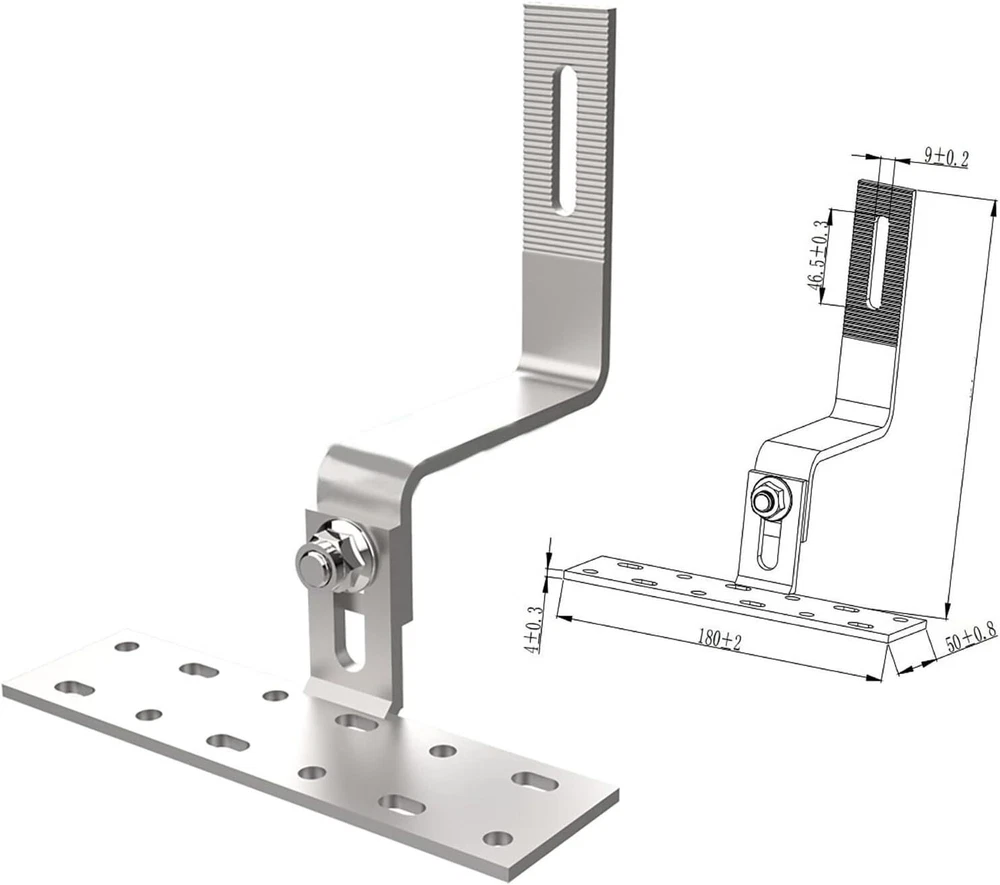 Product Description Features: *Adjustable stainless steel roof hooks for photovoltaic and solar panels. Stainless steel is the most commonly used material for PV s on the market for rooftop PV hooks. *Long service life, resistant to by salt water or moisture. These hooks are installed on the roof without the need for additional support structures. * for frankfurt roof tiles, solar mounts, photovoltaic mounts, for frankfurt brick roof hooks, photovoltaic roof hooks, solar roof hooks, solar roof tiles, solar panel installation, solar installation - hook roof *roof tile, for frankfurt brick, solar fixed, photovoltaic base, stainless steel, adjustable, solar panel installation, solar installation, for frankfurt brick, photovoltaic base, stainless steel, adjustable *roof hooks, roof hooks, photovoltaic, roof hooks, solar roof tiles, installing solar modules, solar installation, photovoltaic base, stainless steel, adjustable, photovoltaic installation, roof hooks, solar installation Specifications: *Product Name: 90 degree vertical adjustable hook *Product material: 304 stainless steel *Size: Show as the picture *Product thickness: T: 4.0mm T: 5.0mm *Product application: connection and installation of various tile surfaces, color steel tile structure roofs and solar panels Package Contents: *90 degree vertical adjustable hook 3*screws *block group or 4*90 degree vertical adjustable hooks 12*screws 4*block groups Note: . The real color of the item may be slightly different from the pictures shown on website caused by many factors such as brightness of your monitor and light brightness. 2. Please allow slight manual measurement deviation for the data. Payment Payment must be completed within 5 days. If you have any problems about payment, please contact us via ebay message. Delivery details We only ship to confirmed ebay Order addresses. Please comfirm that your Order address is in line with your shipping address. Please kindly note that the c ombined shipping is not provided because the shipping fee is calculated by weight. Also, the each additional item means exactly the the same color and size. It takes about 7 -15 working days to US; about 10-30 working days to other countries. Transit time may be a little delayed because of the bad weather and customs inspection . If you do not receive your item within 30 working days since payment finished, please contact us immediately for further assistance. Contact us We strive for 100% customer satisfaction! Positive Feedback is very important to us. If you have any questions, p lease feel free to contact us via "Ask seller a question" . We will reply your email within 24 working hours.