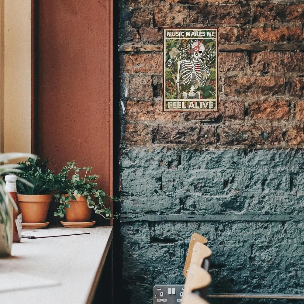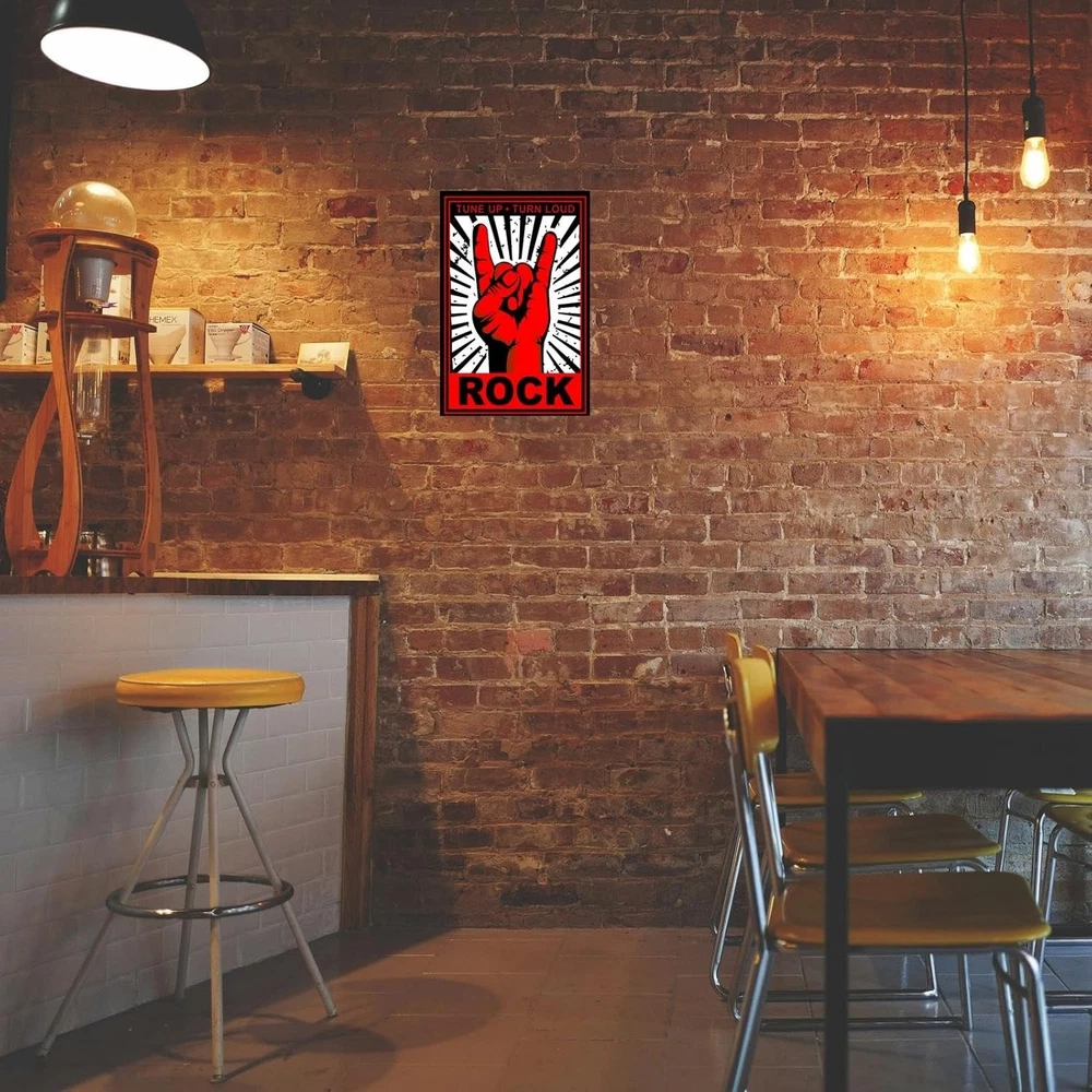 This poster looks amazing on my wall! The vintage design and metal tin finish give it such a cool, retro vibe. Lightweight but sturdy, it was super easy to hang with the pre-drilled holes. Perfect for any music lover—adds instant character to my space. Highly recommend!