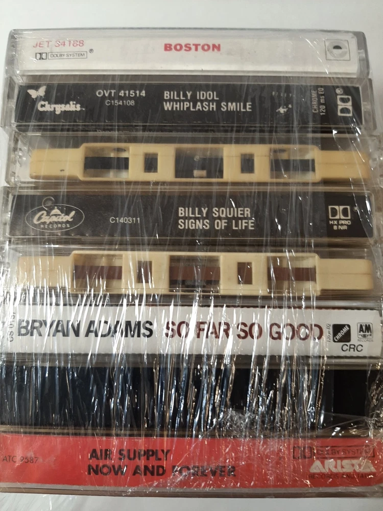Rock Cassette Tape Lot of 8 Boston Billy Idol Bryan Adams Air Supply Etc. In good pre-owned condition may show signs of wear from use/handling/storage/display. Please view all pics for condition/details/flaws/issues. SOLD AS IS UNTESTED there are marks/spots on items, 3 have no inlays, some have lite damage/scratches There is/maybe marks/spots/dirt/debris please see photos 1-24, there is/maybe paper loss/sticker loss/tape loss please see photos 1-24, there is lite discoloration please see photos 1-24, there are surface scratches to item please see photos 1-24, please see all photos for condition/issues/details.