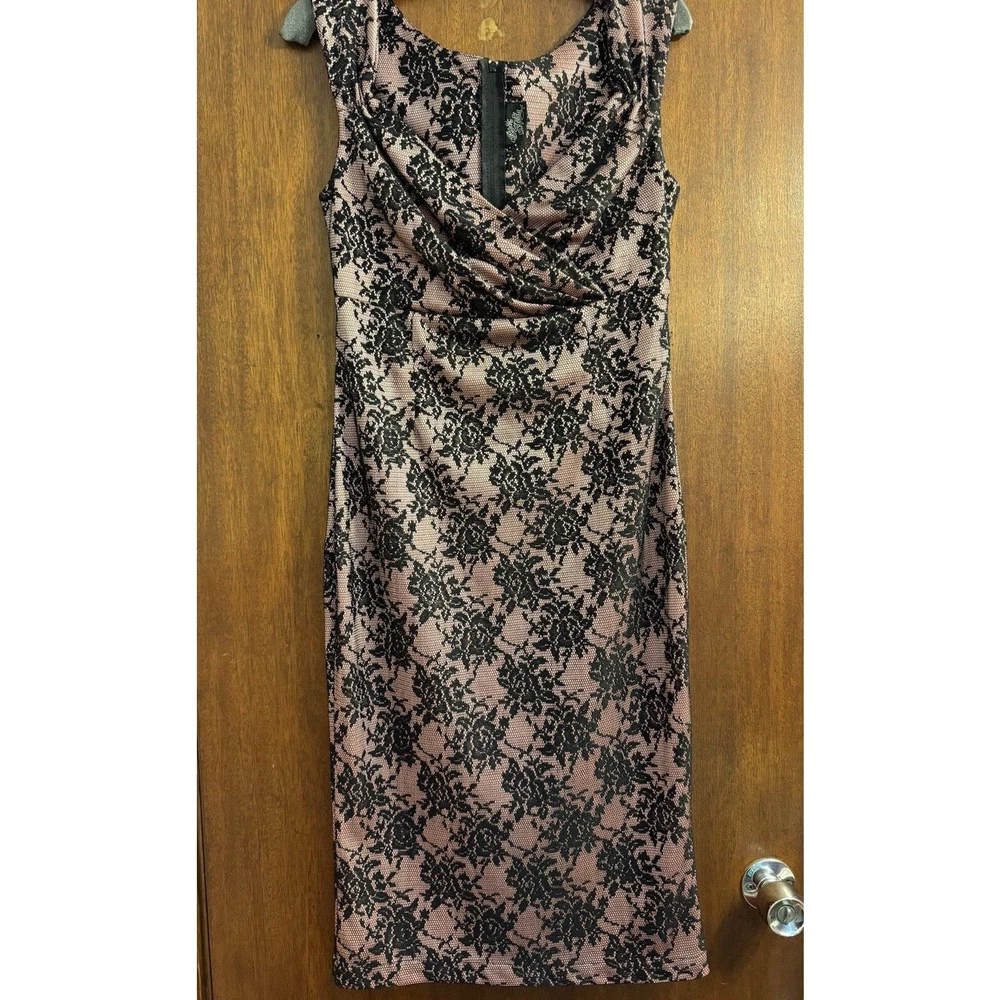 Rock Steady Dress Large Rockabilly Pinup 40s Glam Black Lace Blush Pink. Condition is Pre-owned, but very good. Top to bottom-41.5” Pit to pit-16”