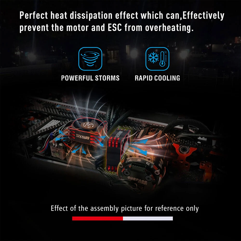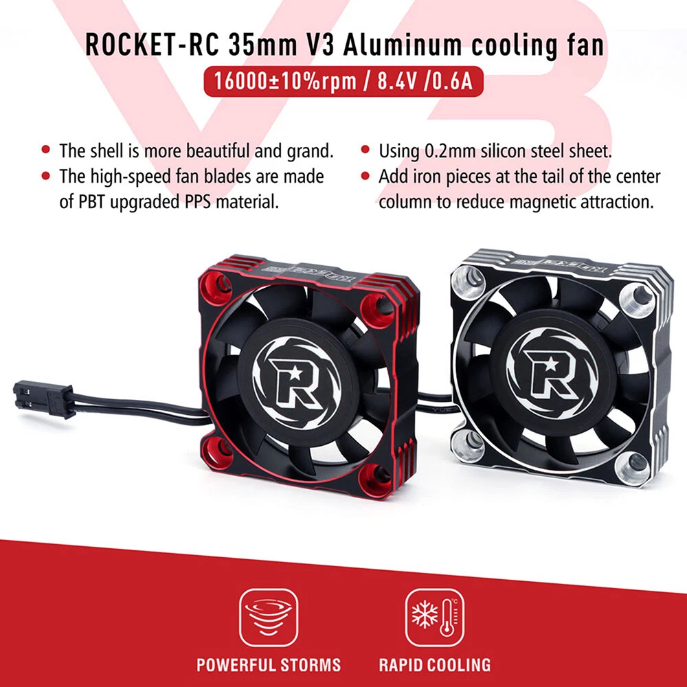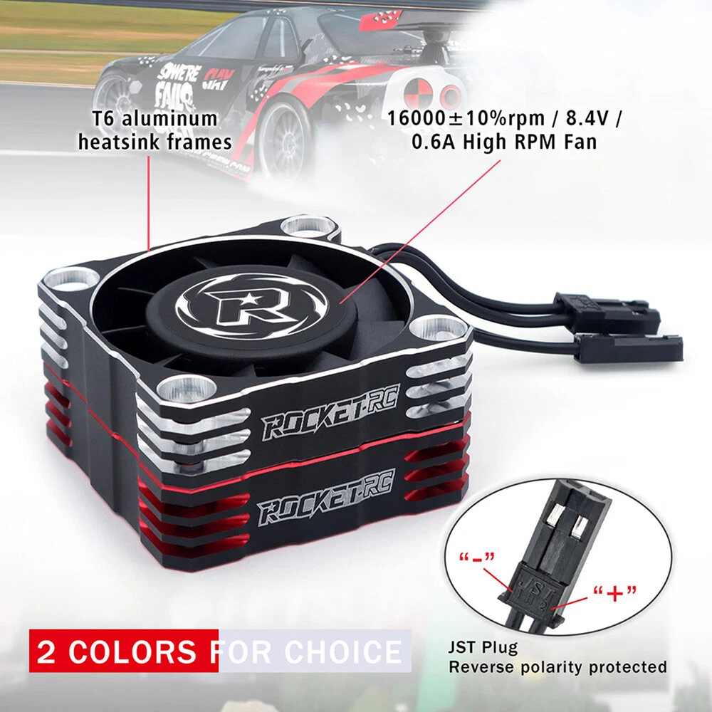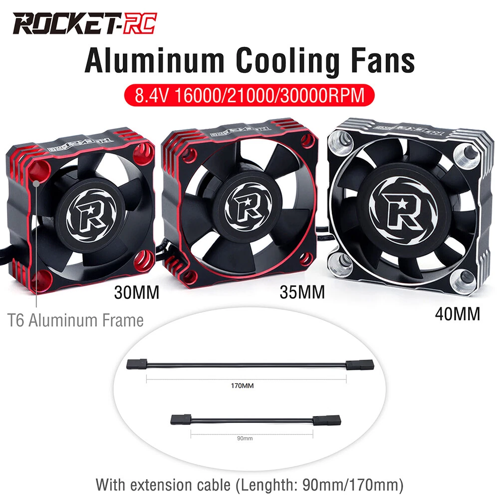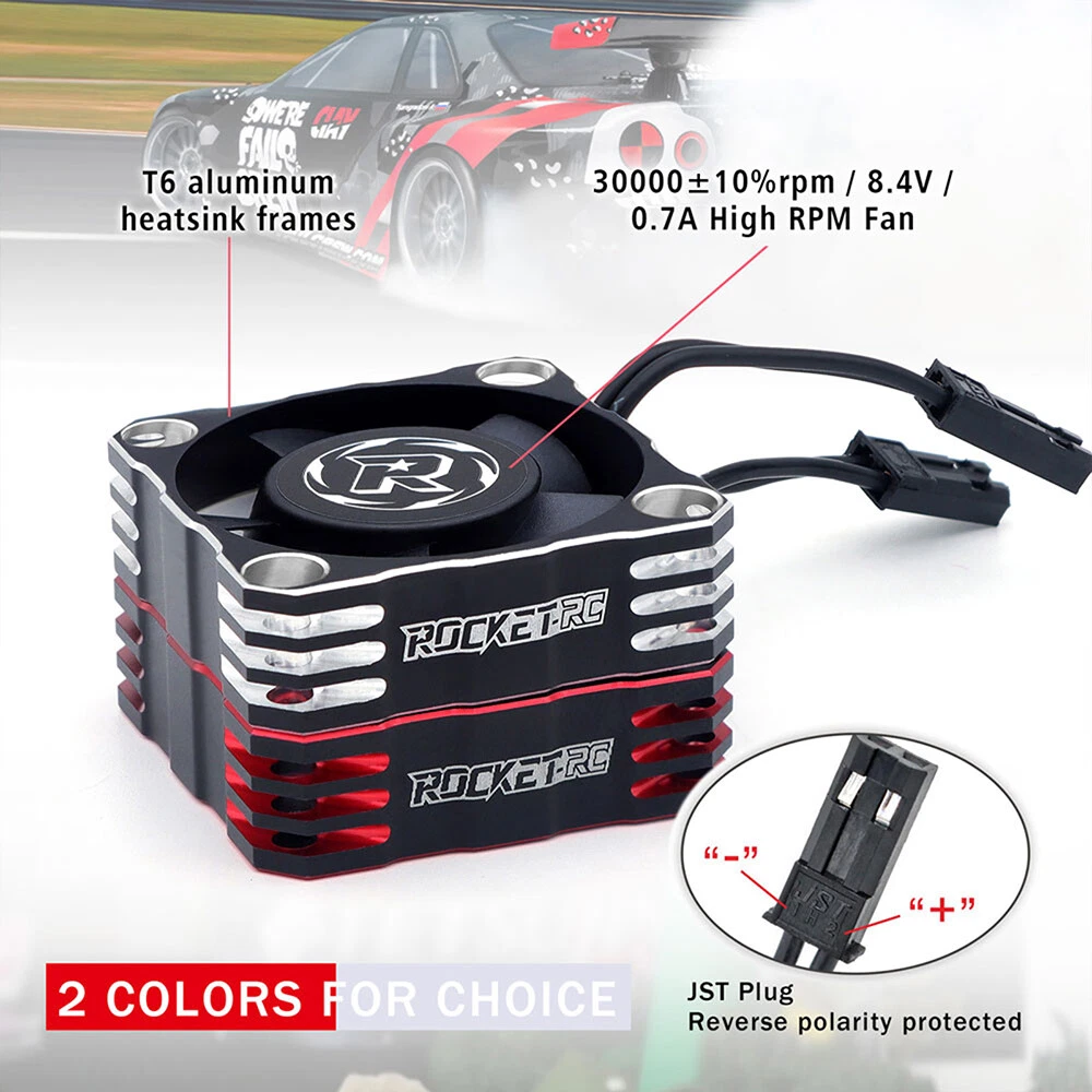 Rocket-RC Metal Cooling Fan 30/35/40mm 8.4V 16000/21000/30000RPM V3 Version T6 Aluminum Frame for RC ESC Motor Heat Dissipation Features: 1. Made of PBT upgraded PPS material, durable for long time use. 2. Add iron pieces at the tail of the center column to reduce magnetic attraction. 3. Small size and lightweight, easy to install and remove. 4. The speed can reach up to16000/21000/30000RPM,excellent heat dissipation effect to protect the motor. 5. This motor cooling fan adopts 45mm black JST connector,easy to install and use. 6. The cooling fan wiring has positive and negative poles,and the wrong connection will not work, safe and secure. Description: This 30/35/40mm Metal Cooling Fan Adopted to T6 Aluminum Heat Dissipation Frame,8.4V 16000/21000/30000RPM Whilst Using Just 0.7A For RC ESC Motor Heat Dissipation, Small Size and Lightweight, Easy to Install and Remove,it can protect your motor better. 30x30x10mm ESC Specifications: Product name: V3 Aluminum Cool Fan Material: Metal Color: Red&Black; Silver&Black Size: 30x30x10mm Current: 0.7A Voltage: 6-8.4V RPM: 30000RPM Plug: JST Scale: 1:10 Wire Length: 34mm Weight: 16.5g 35x35x10mm ESC Specifications: Product name: V3 Aluminum Cool Fan Material: Metal Color: Red&Black; Silver&Black Size:35x35x10mm Current: 0.7A Voltage: 6-8.4V RPM:21000RPM Plug: JST Scale: 1:10 Wire Length: 34mm Weight: 19.7g 40x40x10mm ESC Specifications: Product name: V3 Aluminum Cool Fan Material: Metal Color: Red&Black; Silver&Black Size:40x40x10mm Current: 0.7A Voltage: 8.4V RPM:16000RPM Plug: JST Scale: 1:10 Wire Length: 34mm Weight: 27.8g Fan Extension Cable Specifications: Material: 26AWG Silicone Lenght: 90mm/170mm Terminal: 2P JST/3P JR Weight: 13g Package contents: 1 x Metal Cooling Fan(choice with you) Note: Only the above package content, other products are not included. 1.Due to the difference between different monitors,the picture may not reflect the actual color of the item. We guarantee the style is the same as shown in the pictures. 2.Due to the manual measurement and different measurement methods, please allow 1-3mm deviation.Thanks! Before purchase: 1.All the goods are ready stock, we will arrange the shipment at once if we receive the order. 2.Please read the item description, if you have any question, do not hesitate to contact us. 3.No warranty,if you receive a defect item,please contact us at once with item picture. 4.Use the vouchers for more saving. After purchase: 1.If you are satisfied,please express your use feeling. 2.Please contact us before you are going to give us bad review. We are helpful and will solve the problems. If you receive a defect item,please contact us at once with item picture or video.