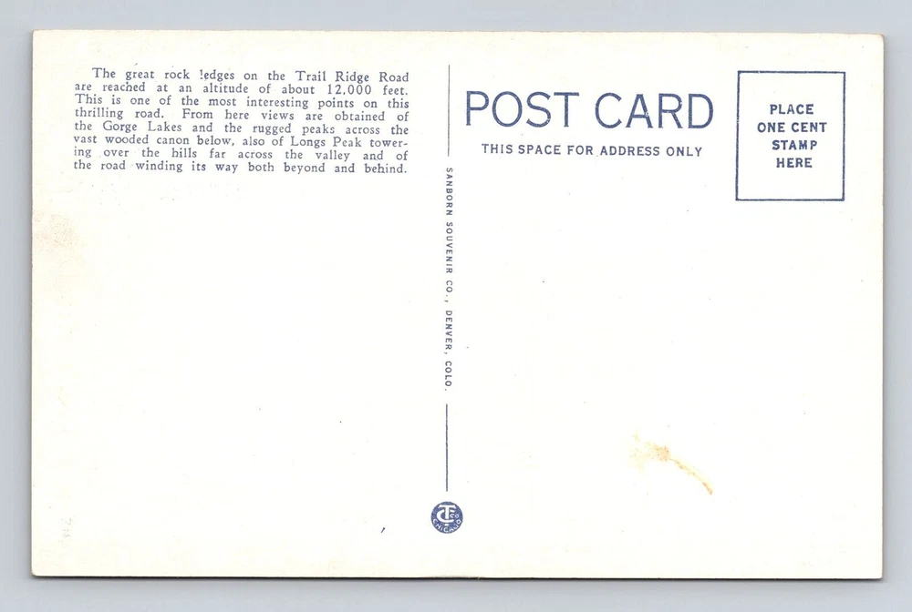 Rocky Mountain National Park, Near Summit, Series #444, Antique Vintage Postcard