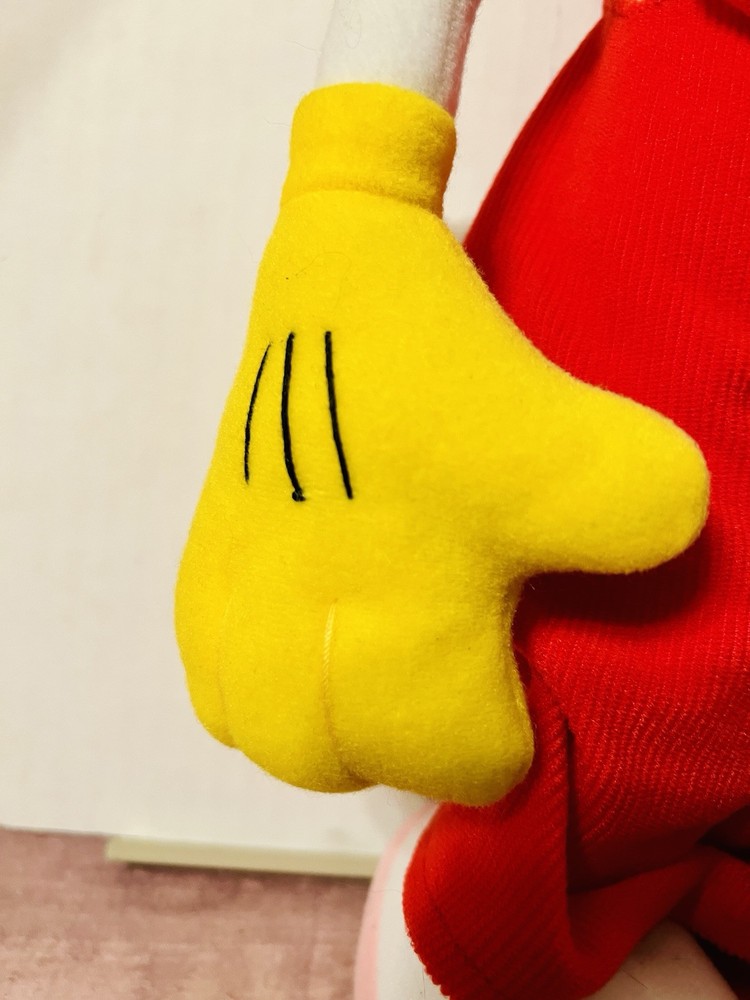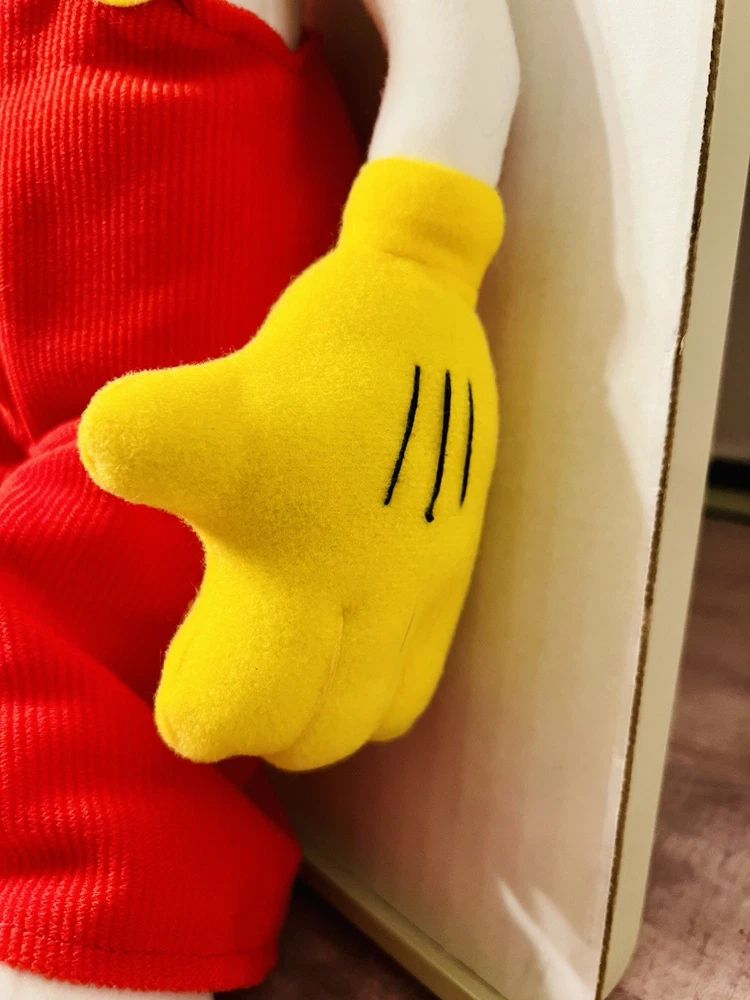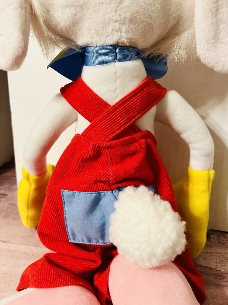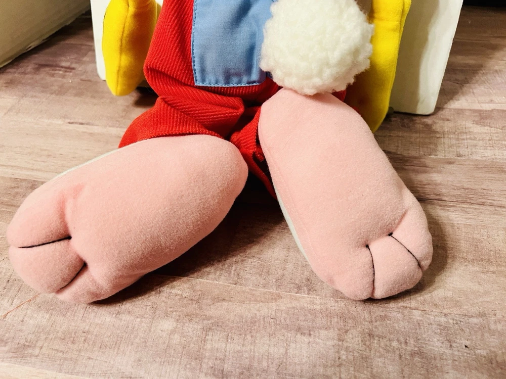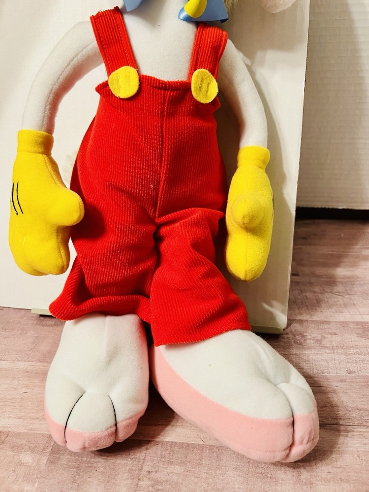 Items looks new, no signs of wear, stains, tears or holes on fabric. Bow tie is still intact. Orange hair still intact. Feet are clean. Red overalls still clean. See pictures on condition of item. you have any questions please ask. Check out my other items I have listed. .