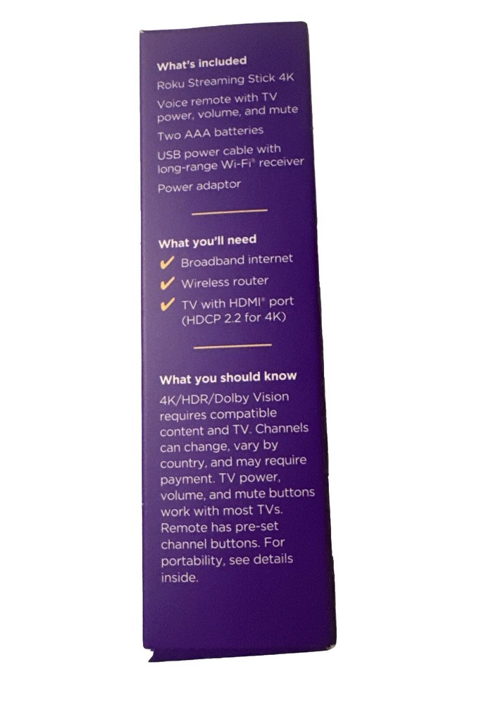 Roku Streaming Stick 4K Media Player HD | 4K | HDR - NEW, Small Indent On Front