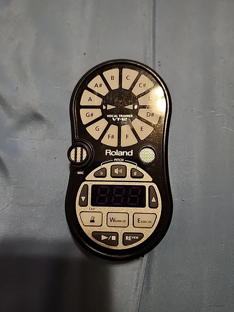Color:N/AModel:VT-12MPN:VT-12Brand:RolandNumber of Mic Inputs:1Number of Line Inputs:1Features:Powered, Built-in MicrophoneItem Height:1.10 inItem Depth:5.27 inItem Weight:2.00 lbType:Vocal TrainerItem Width:2.75 inUPC:0133587274622Input/Output Ports:Analog In, TRS 6.35 mm (1/4") Out, TRS 6.35 mm (1/4") In, TRS 3.5 mm In, TRS 3.5 mm Outgtin13:0133587274622Number of Phono Inputs:1Suitable For:Studio/RecordingForm Factor:Portable