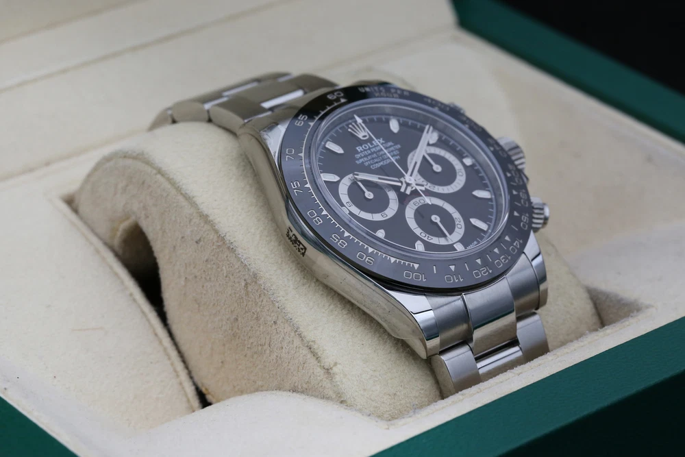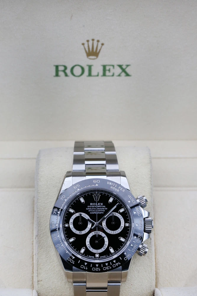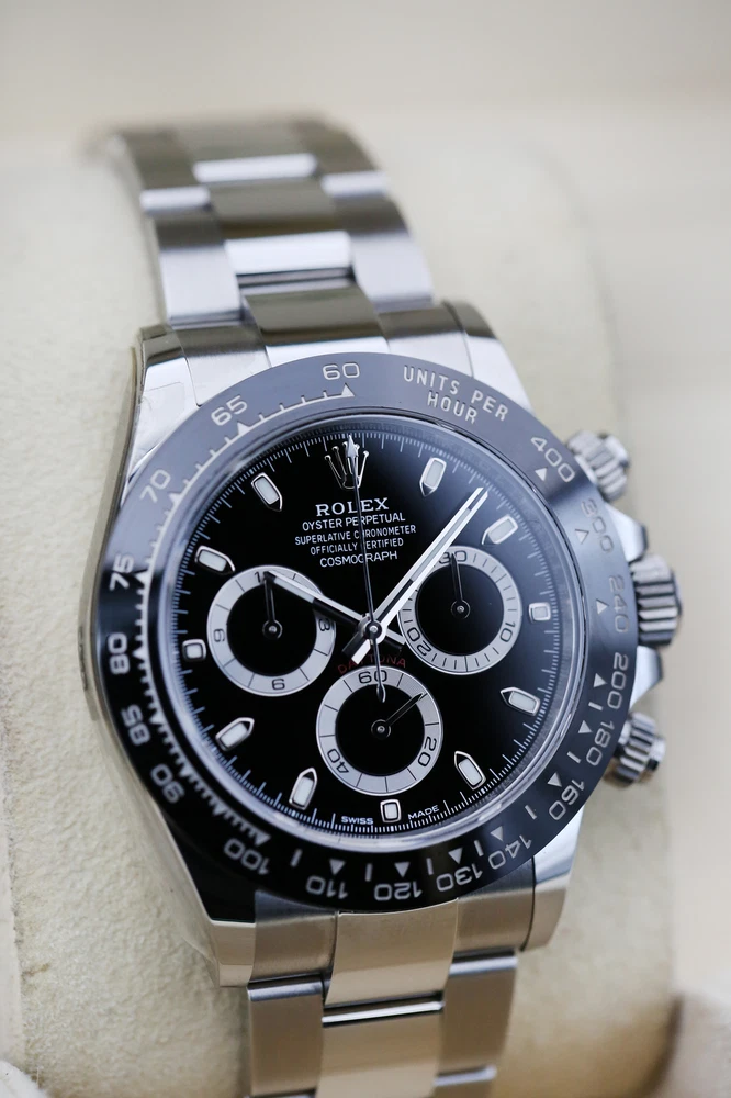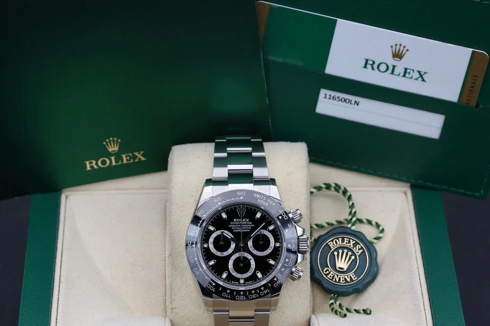 eBay Home Collections All Watches Menu Watches by Brands Rolex Omega Brietling Cartier Patek Audemars Piguet Tudor Watches by Models Day Date DateJust Explorer Sea Dweller Deepsea GMT Sub Mariner OP41 Air King Daytona Sky Dweller Yachtmaster DateJust 26 DateJust 41 Cellini Mens Watches Ladies Watches Watch Rolls Partnered with - Zing Cover Free UK Delivery - At Checkout 5 Star Reviews - On Trustpilot Pay With Bitcoin - At Checkout Discover our collection of exquisite, high-precision timepieces Explore Collections Rolex 116500LN Black DAYTONA 40mm 2020 BRAND: Rolex MODEL: 116500LN CASE SIZE: 40mm BOX: Yes PAPERS: Yes CONDITION: Preowned REFERENCE: DAYTONA CASE: Steel DIAL: Black YEAR: 2020 Description Payment Delivery Returns Description WELCOME TO KETTLE CLUB WATCHES HERE WE HAVE THE ROLEX DAYTONA COSMOGRAPH- BLACK THIS IS A 40MM MODEL AND COMES ON THE FAMOUS OYSTER BRACELET. THE WATCH BOASTS A STYLISH BLACK DIAL, 18CT WHITE GOLD DETAIL ON THE HOUR MARKERS AND CONTRASTING SILVER TRIMMED SUB-DIALS. THIS WATCH FEATURES AN ACCURATE CHRONOGRAPH, A HI-TECH CERACHROM BEZEL WITH BLACK CERAMIC INSERT AND A TACHYMETRIC SCALE ALLOWING DRIVERS TO MEASURE AVERAGE SPEEDS OF UP TO 400 MPH. THE NAME NODS TO DAYTONA, FLORIDA—THE HOME OF A STRONG PASSION FOR SPEED AND MOTOR RACING THAT EMERGED IN THE EARLY 20TH CENTURY. THE RELATIONSHIP BETWEEN ROLEX AND MOTOR RACING STRENGTHENED IN 2013 WHEN THE WATCHMAKER DECIDED TO ENTER THE WORLD OF FORMULA 1, AS GLOBAL PARTNER AND OFFICIAL TIMEPIECE OF THE EXHILARATING SPORT. THIS WATCH INCLUDES • ORIGINAL ROLEX BOX (INNER AND OUTER) • ORIGINAL ROLEX MANUAL • LEATHER CARD HOLDER • ROLEX SWING TAG • ORIGINAL ROLEX WARRANTY CARD THIS WATCH HAS HAD A FULL INSPECTION AND IS IN IMMACULATE CONDITION. IT WAS ORIGINALLY PURCHASED IN OCTOBER 2020 AND IS COVERED UNDER ROLEX WARRANTY UNTIL OCTOBER 2025, THE KETTLE CLUB ARE HAPPY TO PROVIDE AN ADDITIONAL AND COMPLIMENTARY 1 YEAR WARRANTY WITH THIS WATCH THAT BEGINS AT THE EXPIRY OF THE MANUFACTURERS WARRANTY. WHY CHOOSE US? • AUTHENTICITY GUARANTEED: EVERY WATCH IS THOROUGHLY INSPECTED AND VERIFIED FOR AUTHENTICITY. • EXPERT SERVICE: OUR TEAM OF EXPERTS IS DEDICATED TO PROVIDING EXCEPTIONAL CUSTOMER SERVICE AND SUPPORT. • COMPETITIVE PRICING: ENJOY COMPETITIVE PRICING ON ALL OUR LUXURY TIMEPIECES. ALL OF OUR WATCHES COME WITH A COMPLIMENTARY 1 YEAR WARRANTY, THIS IS IN ADDITION TO ANY REMAINING MANUFACTURERS WARRANTY. ALL WATCHES ARE SHIPPED UK WIDE FOR FREE. ON INTERNATIONAL SHIPPING WE USE FEDEX, FULLY INSURED. OUR INTERNATIONAL CUSTOMERS SHOULD BE AWARE THEY MAY BE LIABLE TO PAY CUSTOMS DUTY COSTS ON IMPORTS. WE WILL NOT COVER ANY CUSTOMS DUTY COST. Payment Delivery is free of charge to most of the UK on all items in store. Products with a 7-14 working day lead time are delivered by our dedicated courier service. They will contact you before your delivery to confirm a date and give you a three-hour time slot for your delivery. Next-day availability is stated on the product page. Orders placed before 1:30 pm on selected vendors, Monday-Thursday will be delivered the next working day. Orders placed after 1:30 pm will be delivered the next following working day. Orders placed before 1:30 pm on Friday will be delivered the following Monday, any time after 1:30 pm the order will be delivered on Tuesday. Alternatively, you can select a convenient delivery date for yourself on the product page before the checkout. Delivery Deliveries within the UK are made using the Royal Mail Special Delivery service. Deliveries outside the UK are made using either DHL or Fedex depending on the size of the package and the location. UK postage and international shipping are both included in advertised price. Alternatively, please contact us before placing an order. A signature will be required for receipt of the goods by an adult (age 18 years or over) at the delivery address (whether yourself or a member of your household). If no-one is available when the carrier attempts delivery, the carrier may leave a calling card for you to re-arrange delivery at a more convenient time. Alternatively, you may need to collect the goods from your local delivery office provided you can produce adequate proof of identity. We will only deliver to the delivery address given in your order. If you pay by debit/credit card the goods must be dispatched to the billing address of the card holder. However, if you require the goods to be delivered to a work address please ensure that this is included when placing the order. The delivery address can not be changed after an order has been made and payment received. Watches may be collected from our offices but by appointment only for security purposes. Returns We are confident that you will love your purchase, but we also like to provide peace of mind when shopping online. We offer a 14 day returns period from the date of delivery, entitling you to a full refund or exchange. If for any reason you would like to make a return, please contact a member of our team by email or phone to register your return. After receiving confirmation and return and our secure postal address details from a member of the team, items may be returned via Royal Mail special delivery or returned to the store by appointment only: Store address :(This is for appointments only, no returns to be made to this address) KettleClub Address: 53 Liverpool Street, London EC2M 7QN Once your return is received and inspected, we will send you an email or call you to notify you that we have received your returned item. We will also notify you of the approval or rejection of your refund. If you are approved, then your refund will be processed, and a credit will automatically be applied to your credit card or original method of payment, within 5-7 working days. Shop Rolex Shop Audemars Shop Tudor Shop Panerai Shop Patek Shop Cartier New Arrivals Rolex 69178 White Roman DATEJUST 26mm 1984 B#8,500.00 Rolex 116233 White Roman DATEJUST 36mm 2008 B#8,750