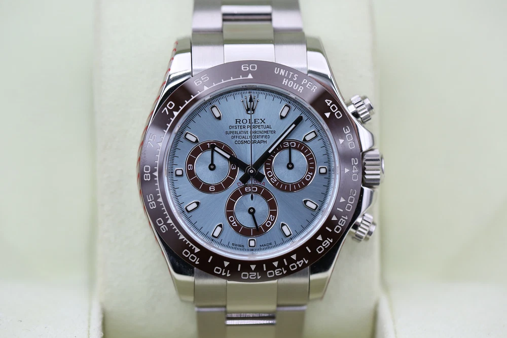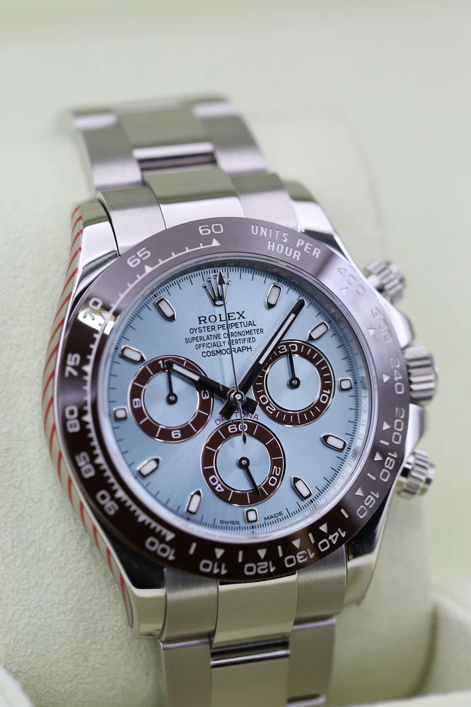 eBay Home Collections All Watches Menu Watches by Brands Rolex Omega Brietling Cartier Patek Audemars Piguet Tudor Watches by Models Day Date DateJust Explorer Sea Dweller Deepsea GMT Sub Mariner OP41 Air King Daytona Sky Dweller Yachtmaster DateJust 26 DateJust 41 Cellini Mens Watches Ladies Watches Watch Rolls Partnered with - Zing Cover Free UK Delivery - At Checkout 5 Star Reviews - On Trustpilot Pay With Bitcoin - At Checkout Discover our collection of exquisite, high-precision timepieces Explore Collections Rolex 116506 Blue DAYTONA 40mm 2014 BRAND: Rolex MODEL: 116506 CASE SIZE: 40mm BOX: Yes PAPERS: Yes CONDITION: Preowned REFERENCE: DAYTONA CASE: Platinum DIAL: Blue YEAR: 2014 Description Payment Delivery Returns Description WELCOME TO KETTLE CLUB WATCHES HERE WE HAVE THE ROLEX DAYTONA COSMOGRAPH- PLATINUM (2 DIAL OPTIONS) THIS IS A FULL PLATINUM 40MM MODEL THAT COMES ON THE FAMOUS OYSTER BRACELET, IT IS EQUIPT WITH A STUNNING ICE BLUE DIAL AND AS AN ADDITIONAL BENEFIT THIS WATCH WILL COME WITH A SECOND DIAL OPTION THE DAZZLING ICE BLUE BAGUETTE DIAMOND DIAL. THIS WATCH BOASTS AN ACCURATE CHRONOGRAPH ON 3 CONTRASTING CHOCOLATE SUB-DIALS, A HI-TECH CERACHROM BEZEL WITH CHOCOLATE CERAMIC INSERT AND A TACHYMETRIC SCALE ALLOWING DRIVERS TO MEASURE AVERAGE SPEEDS OF UP TO 400 MPH.THE NAME NODS TO DAYTONA, FLORIDA—THE HOME OF A STRONG PASSION FOR SPEED AND MOTOR RACING THAT EMERGED IN THE EARLY 20TH CENTURY. THE RELATIONSHIP BETWEEN ROLEX AND MOTOR RACING STRENGTHENED IN 2013 WHEN THE WATCHMAKER DECIDED TO ENTER THE WORLD OF FORMULA 1, AS GLOBAL PARTNER AND OFFICIAL TIMEPIECE OF THE EXHILARATING SPORT. THIS WATCH INCLUDES • ORIGINAL ROLEX BOX (INNER AND OUTER) • ORIGINAL ROLEX MANUAL • LEATHER CARD HOLDER • ROLEX SWING TAGS (GREEN & RED) • ORIGINAL ROLEX WARRANTY CARD THIS WATCH HAS HAD A FULL INSPECTION AND IS IN IMMACULATE CONDITION. IT WAS ORIGINALLY PURCHASED IN JULY 2014 AND HAD A FULL SERVICE BY ROLEX IN DECEMBER 2021. THE ROLEX WARRANTY HAS NOW EXPIRED BUT THE WATCH IS UNWORN SINCE THE SERVICE DATE. THE KETTLE CLUB ARE HAPPY TO PROVIDE A COMPLIMENTARY 1 YEAR WARRANTY WITH THIS WATCH. WHY CHOOSE US? • AUTHENTICITY GUARANTEED: EVERY WATCH IS THOROUGHLY INSPECTED AND VERIFIED FOR AUTHENTICITY. • EXPERT SERVICE: OUR TEAM OF EXPERTS IS DEDICATED TO PROVIDING EXCEPTIONAL CUSTOMER SERVICE AND SUPPORT. • COMPETITIVE PRICING: ENJOY COMPETITIVE PRICING ON ALL OUR LUXURY TIMEPIECES. ALL OF OUR WATCHES COME WITH A COMPLIMENTARY 1 YEAR WARRANTY, THIS IS IN ADDITION TO ANY REMAINING MANUFACTURERS WARRANTY. ALL WATCHES ARE SHIPPED UK WIDE FOR FREE. ON INTERNATIONAL SHIPPING WE USE FEDEX, FULLY INSURED. OUR INTERNATIONAL CUSTOMERS SHOULD BE AWARE THEY MAY BE LIABLE TO PAY CUSTOMS DUTY COSTS ON IMPORTS. WE WILL NOT COVER ANY CUSTOMS DUTY COST. Payment Delivery is free of charge to most of the UK on all items in store. Products with a 7-14 working day lead time are delivered by our dedicated courier service. They will contact you before your delivery to confirm a date and give you a three-hour time slot for your delivery. Next-day availability is stated on the product page. Orders placed before 1:30 pm on selected vendors, Monday-Thursday will be delivered the next working day. Orders placed after 1:30 pm will be delivered the next following working day. Orders placed before 1:30 pm on Friday will be delivered the following Monday, any time after 1:30 pm the order will be delivered on Tuesday. Alternatively, you can select a convenient delivery date for yourself on the product page before the checkout. Delivery Deliveries within the UK are made using the Royal Mail Special Delivery service. Deliveries outside the UK are made using either DHL or Fedex depending on the size of the package and the location. UK postage and international shipping are both included in advertised price. Alternatively, please contact us before placing an order. A signature will be required for receipt of the goods by an adult (age 18 years or over) at the delivery address (whether yourself or a member of your household). If no-one is available when the carrier attempts delivery, the carrier may leave a calling card for you to re-arrange delivery at a more convenient time. Alternatively, you may need to collect the goods from your local delivery office provided you can produce adequate proof of identity. We will only deliver to the delivery address given in your order. If you pay by debit/credit card the goods must be dispatched to the billing address of the card holder. However, if you require the goods to be delivered to a work address please ensure that this is included when placing the order. The delivery address can not be changed after an order has been made and payment received. Watches may be collected from our offices but by appointment only for security purposes. Returns We are confident that you will love your purchase, but we also like to provide peace of mind when shopping online. We offer a 14 day returns period from the date of delivery, entitling you to a full refund or exchange. If for any reason you would like to make a return, please contact a member of our team by email or phone to register your return. After receiving confirmation and return and our secure postal address details from a member of the team, items may be returned via Royal Mail special delivery or returned to the store by appointment only: Store address :(This is for appointments only, no returns to be made to this address) KettleClub Address: 53 Liverpool Street, London EC2M 7QN Once your return is received and inspected, we will send you an email or call you to notify you that we have received your returned item. We will also notify you of the approval or rejection of your refund. If you are approved, then your refund will be processed, and a credit will automatically be applied to your credit card or original method of payment, within 5-7 working days. Shop Rolex Shop Audemars Shop Tudor Shop Panerai Shop Patek Shop