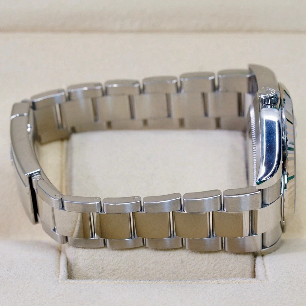 Description GENERAL DESCRIPTION The 116334 is an expression of timeless prestige. It features a silver Diamond dial that add a touch of classic sophistication. Its 41 mm stainless steel case, complemented by a white gold bezel, perfectly fuses durability and luxury. Equipped with a high-precision automatic movement, it guarantees exceptional performance and reliability. WATCH DETAILS The watch is in excellent condition. Clea crystal and bezel. If you have any additional questions regarding the condition of the watch please do not hesitate to contact us. ABOUT US We are a company dedicated to buy and sell luxury watches. We have the highest quality standards and the most detailed selection processes. Each of our pieces is previously checked by our watchmaker to authenticate the quality of the piece. DISCLAIMER 1 - We use a macro lens for professional photography, it is possible that dust or particles may be perceived in the picture. The description of the watch is given in the description 2 - When packed, the watch is handled carefully and meticulously, however, due to transportation and delivery, slight handling marks may occur. COMES WITH Box : Yes Papers : Yes