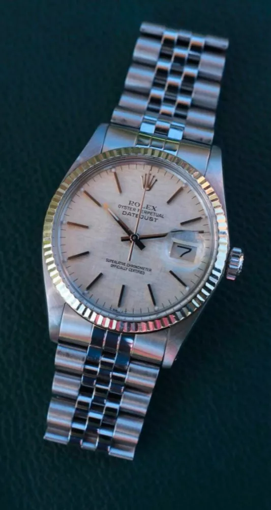 Case Color:SilverWith Papers:NoDial Color:LinenMovement:Mechanical (Automatic)Vintage:YesBezel Color:SilverWith Original Box/Packaging:NoUPC:Does not applyWater Resistance:50 m (5 ATM)Band Material:Stainless SteelYear Manufactured:1980-1989Style:Luxury: Sport Stylesgtin13:Does not applyReference Number:16014Country/Region of Manufacture:SwitzerlandWith Service Records:NoCase Material:Stainless SteelDepartment:Men'sBezel Type:FlutedType:LuxuryCase Size:36 mmSeller Warranty:NoCustomized:NoDisplay:AnalogCaseback:SolidCase Thickness:13 mmDial Pattern:LinenFeatures:Chronometer, Date IndicatorWatch Shape:RoundBrand:RolexWith Manual/Booklet:NoLug Width:20 mmBand Color:SilverIndices:Baton IndexesModel:Rolex Datejust