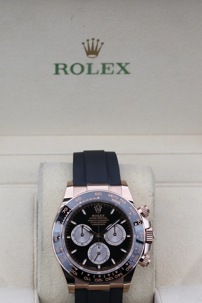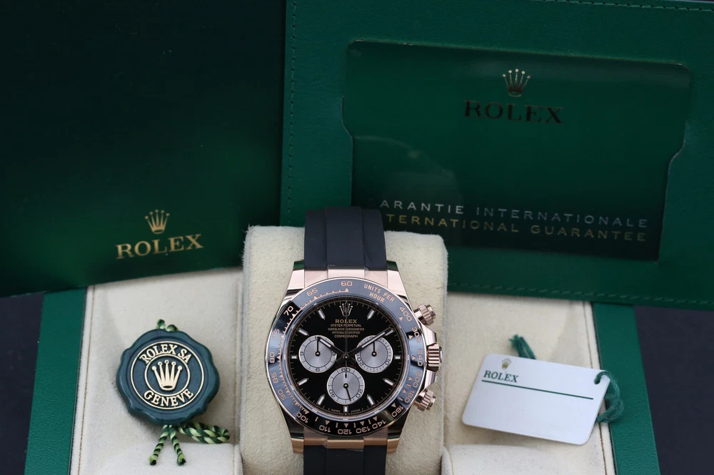 eBay Home Collections All Watches Menu Watches by Brands Rolex Omega Brietling Cartier Patek Audemars Piguet Tudor Watches by Models Day Date DateJust Explorer Sea Dweller Deepsea GMT Sub Mariner OP41 Air King Daytona Sky Dweller Yachtmaster DateJust 26 DateJust 41 Cellini Mens Watches Ladies Watches Watch Rolls Partnered with - Zing Cover Free UK Delivery - At Checkout 5 Star Reviews - On Trustpilot Pay With Bitcoin - At Checkout Discover our collection of exquisite, high-precision timepieces Explore Collections Rolex Daytona Black 126515LN 40mm 2024 BRAND: Rolex MODEL: Daytona CASE SIZE: 40mm BOX: Yes PAPERS: Yes CONDITION: Unworn REFERENCE: 126515LN CASE: Rose Gold DIAL: Black YEAR: 2024 Description Payment Delivery Returns Description WELCOME TO KETTLE CLUB WATCHES HERE WE HAVE THE ROLEX DAYTONA COSMOGRAPH- BLACK THIS IS A 40MM MODEL AND COMES ON THE FAMOUS OYSTERFLEX BRACELET. THE WATCH BOASTS AN 18CT ROSE GOLD CASE, A SLEEK STYLISH BLACK DIAL, 18CT ROSE GOLD DETAIL ON THE HOUR MARKERS AND 3 CONTRASTING SUNDUST SUB-DIALS. THIS WATCH FEATURES AN ACCURATE CHRONOGRAPH, A HI-TECH CERACHROM BEZEL WITH BLACK CERAMIC INSERT AND A TACHYMETRIC SCALE ALLOWING DRIVERS TO MEASURE AVERAGE SPEEDS OF UP TO 400 MPH. THE NAME NODS TO DAYTONA, FLORIDA—THE HOME OF A STRONG PASSION FOR SPEED AND MOTOR RACING THAT EMERGED IN THE EARLY 20TH CENTURY. THE RELATIONSHIP BETWEEN ROLEX AND MOTOR RACING STRENGTHENED IN 2013 WHEN THE WATCHMAKER DECIDED TO ENTER THE WORLD OF FORMULA 1, AS GLOBAL PARTNER AND OFFICIAL TIMEPIECE OF THE EXHILARATING SPORT. THIS WATCH INCLUDES • ORIGINAL ROLEX BOX (INNER AND OUTER) • ORIGINAL ROLEX MANUAL • LEATHER CARD HOLDER • ROLEX SWING TAGS (WHITE & GREEN) • ORIGINAL ROLEX WARRANTY CARD THIS WATCH HAS HAD A FULL INSPECTION AND IS IN UNWORN MINT CONDITION. IT WAS ORIGINALLY PURCHASED IN OCTOBER 2024 AND IS COVERED UNDER ROLEX WARRANTY UNTIL OCTOBER 2029, WE ARE HAPPY TO PROVIDE AN ADDITIONAL AND COMPLIMENTARY 1 YEAR WARRANTY WITH THIS WATCH THAT BEGINS AT THE EXPIRY OF THE MANUFACTURERS WARRANTY. WHY CHOOSE US? • AUTHENTICITY GUARANTEED: EVERY WATCH IS THOROUGHLY INSPECTED AND VERIFIED FOR AUTHENTICITY. • EXPERT SERVICE: OUR TEAM OF EXPERTS IS DEDICATED TO PROVIDING EXCEPTIONAL CUSTOMER SERVICE AND SUPPORT. • COMPETITIVE PRICING: ENJOY COMPETITIVE PRICING ON ALL OUR LUXURY TIMEPIECES. ALL OF OUR WATCHES COME WITH A COMPLIMENTARY 1 YEAR WARRANTY, THIS IS IN ADDITION TO ANY REMAINING MANUFACTURERS WARRANTY. ALL WATCHES ARE SHIPPED UK WIDE FOR FREE. ON INTERNATIONAL SHIPPING WE USE FEDEX, FULLY INSURED. OUR INTERNATIONAL CUSTOMERS SHOULD BE AWARE THEY MAY BE LIABLE TO PAY CUSTOMS DUTY COSTS ON IMPORTS. Payment Delivery is free of charge to most of the UK on all items in store. Products with a 7-14 working day lead time are delivered by our dedicated courier service. They will contact you before your delivery to confirm a date and give you a three-hour time slot for your delivery. Next-day availability is stated on the product page. Orders placed before 1:30 pm on selected vendors, Monday-Thursday will be delivered the next working day. Orders placed after 1:30 pm will be delivered the next following working day. Orders placed before 1:30 pm on Friday will be delivered the following Monday, any time after 1:30 pm the order will be delivered on Tuesday. Alternatively, you can select a convenient delivery date for yourself on the product page before the checkout. Delivery Deliveries within the UK are made using the Royal Mail Special Delivery service. Deliveries outside the UK are made using either DHL or Fedex depending on the size of the package and the location. UK postage and international shipping are both included in advertised price. Alternatively, please contact us before placing an order. A signature will be required for receipt of the goods by an adult (age 18 years or over) at the delivery address (whether yourself or a member of your household). If no-one is available when the carrier attempts delivery, the carrier may leave a calling card for you to re-arrange delivery at a more convenient time. Alternatively, you may need to collect the goods from your local delivery office provided you can produce adequate proof of identity. We will only deliver to the delivery address given in your order. If you pay by debit/credit card the goods must be dispatched to the billing address of the card holder. However, if you require the goods to be delivered to a work address please ensure that this is included when placing the order. The delivery address can not be changed after an order has been made and payment received. Watches may be collected from our offices but by appointment only for security purposes. Returns We are confident that you will love your purchase, but we also like to provide peace of mind when shopping online. We offer a 14 day returns period from the date of delivery, entitling you to a full refund or exchange. If for any reason you would like to make a return, please contact a member of our team by email or phone to register your return. After receiving confirmation and return and our secure postal address details from a member of the team, items may be returned via Royal Mail special delivery or returned to the store by appointment only: Store address :(This is for appointments only, no returns to be made to this address) KettleClub Address: 53 Liverpool Street, London EC2M 7QN Once your return is received and inspected, we will send you an email or call you to notify you that we have received your returned item. We will also notify you of the approval or rejection of your refund. If you are approved, then your refund will be processed, and a credit will automatically be applied to your credit card or original method of payment, within 5-7 working days. Shop Rolex Shop Audemars Shop Tudor Shop Panerai Shop Patek Shop Cartier New Arrivals Rolex 69178 White Roman DATEJUST 26mm 1984 B#8,500.00 Rolex 116233 White Roman DATEJUST 36mm 2008 B#8,750.00 Tu