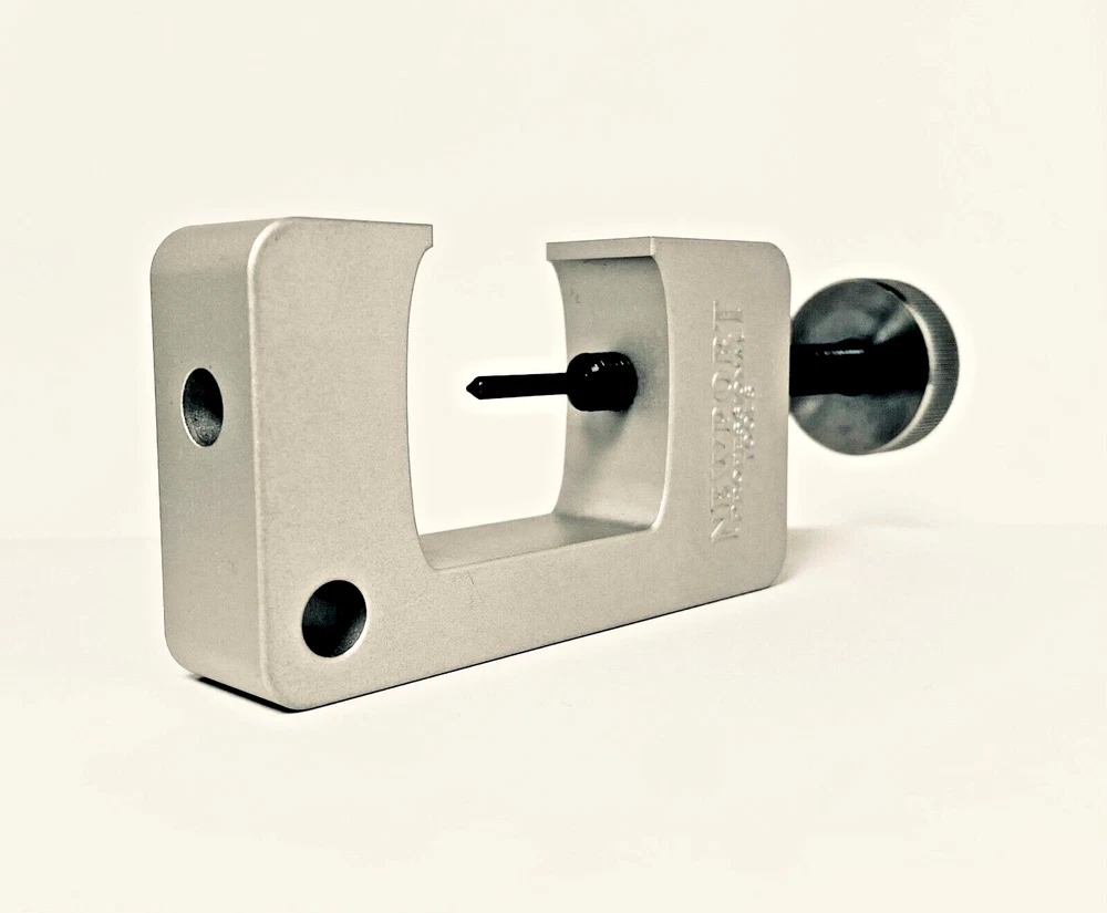 Roll Pin Pusher Remover Tool This listing also includes: an additional Roll Pin Pusher bolt. 10 pack of 1/8" x 1 1/8" (3mm x 28mm) stainless steel roll pins. NOTE : Photos with EZ Red PPT13 is for comparative purposes only. The listing is for one NPT1 tool. NEWPORTTOOLS.com model NPT1: Our new patent pending roll pin pusher tool is designed to make roll pin removal quick and easy. It features a solid anodized aluminum body with a stainless steel knurled head and a Carbon Steel black oxide finished M8 shaft for superior chemical and corrosion resistance. This Roll Pin Pusher Tool is particulary effective with Pentair Hayward Purex Jandy PacFab Sta-Rite Waterway -type push pull slide backwash valve T-handle locking roll pin removal and reinsertion. Versatile Usage: This roll pin pusher tool is suitable for a wide variety of mechanical, automotive, aerospace, firearms and construction equipment repairs. It is ideal for removing locking roll pins, (Sellock or C-pins) from components such as gears, bearings, pulleys, and more. Easy to Use: Our roll pin pusher tool is designed to be easy to use. Simply insert the tool into the roll pin and turn it to push the pin out. The knurled head provides a secure grip and the Carbon Steel Black Oxide coated M8 shaft ensures strength and durability. Durable Construction: This roll pin pusher tool is built to last. The solid anodized aluminum body and stainless steel knurled head are resistant to wear and tear, making it a reliable tool for years to come. Tool dimensions and features: Solid anodized aluminum body - 3 1/2" long x 2" wide x 25/32" thick (or 9cm long x 5cm wide x 2cm thick). Carbon steel shaft with black oxide finish - 1/8" diameter tip x 3 3/4" long shaft x 1 1/8" diameter stainless steel knurled head. (or 3mm diameter tip x 95mm long shaft x 30mm diameter stainless steel knurled head).