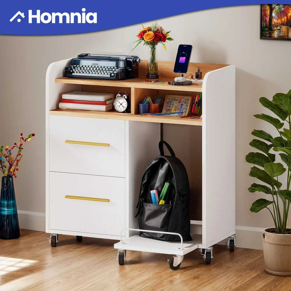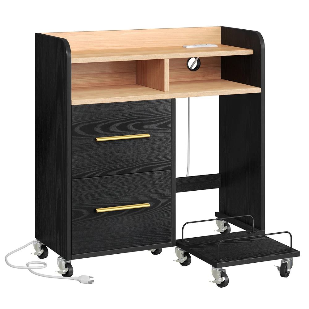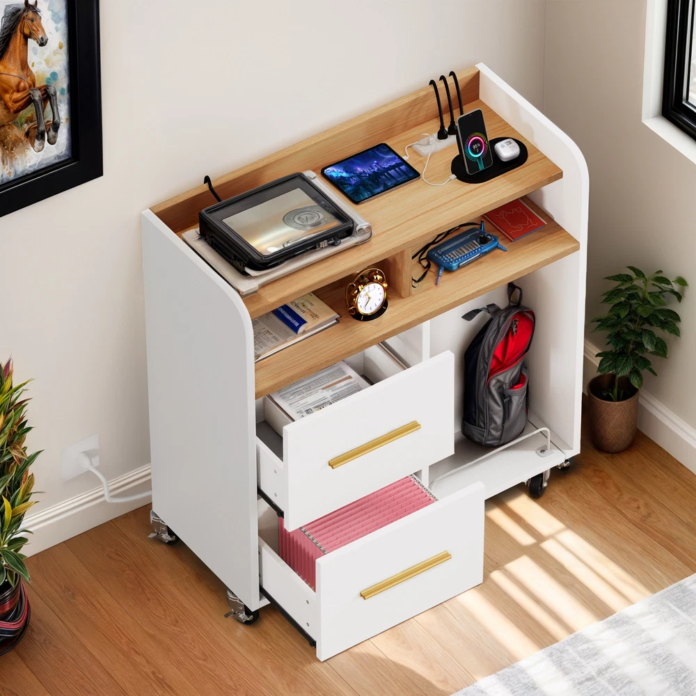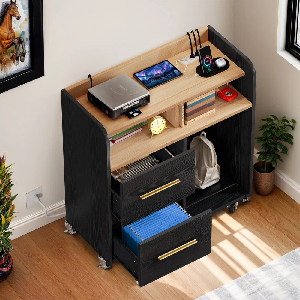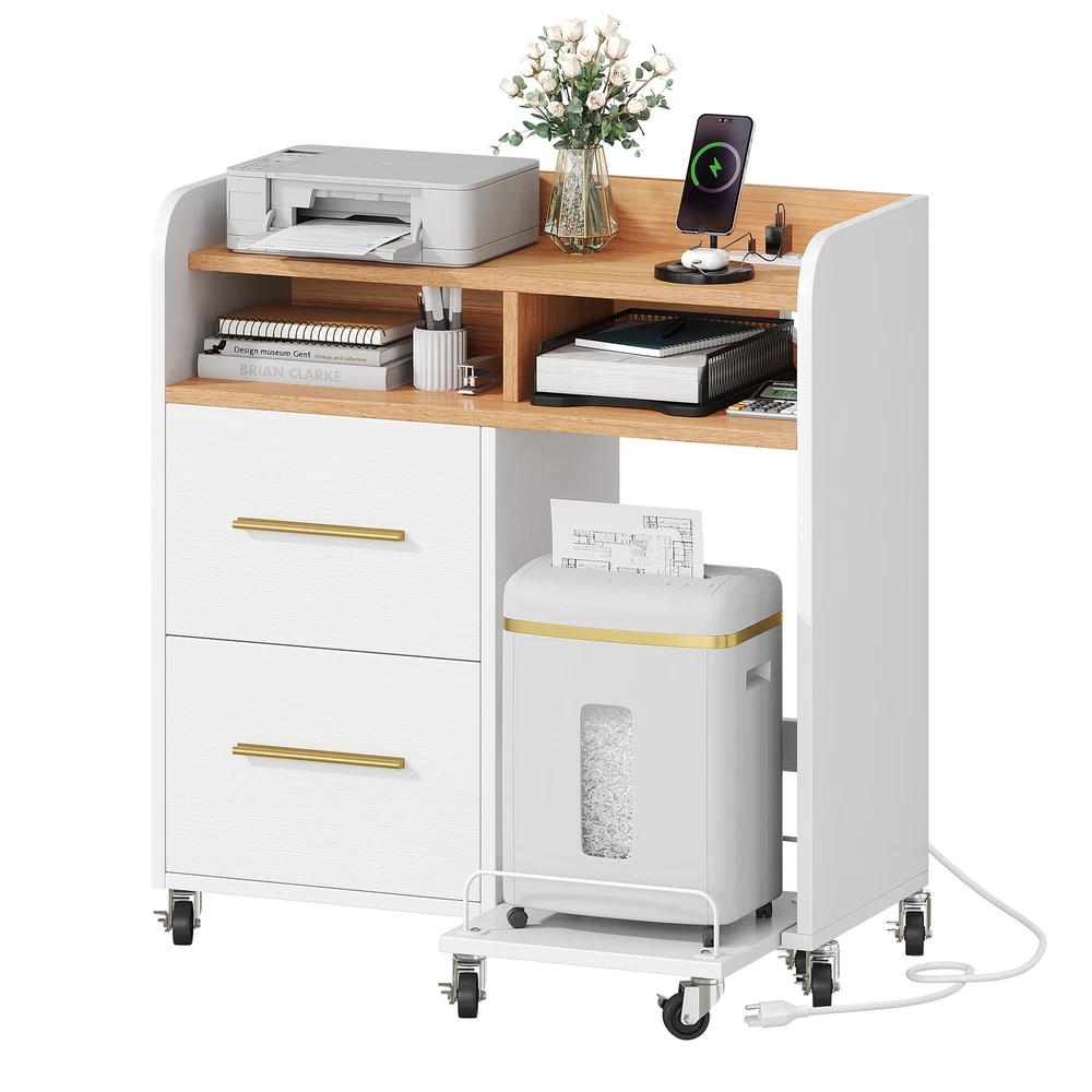 Mobile Filing Cabinet With Paper Shredder Stand & Charging Station 2 Drawers Lateral Wood Home Office File Organizer Open Storage Shelves for A4, Letter, Legal Size Files Product Description NOTE: Professional Installation would be Highly Recommended. Description: 1. Color: Available in 2 Colors; White / Black 2. Material: Engineering Wood + Melamine 3. Document Size : Convertible Letter & Legal 4. USB Port Charging Output : 5V/2A, 10watt 5. UL Charging Outlet : 3 x 120V/12A 6. Recommended Uses For Product: Files & Folders 7. Room Placement Recommendation : Entryway, Bedroom, Living Room, Home Office Features: 1. Keep your workspace clutter-free and devices charged. This wood file cabinet features a built-in charging station with 3 UL-listed outlets, 2 USB ports, and a 4.9-foot power cord. This eliminates the need for bulky power strips and keeps your printer, lamp, phone, iPad, and laptop powered up for efficient work or study sessions. 2. Sturdy and Secure: Constructed from thick P2 board for impressive strength (up to 110 lbs!), this cabinet also features a plastic back buckle for enhanced stability. Enjoy reliable storage with added peace of mind. 3. Simplify Your Office: Streamline your workspace with this all-in-one solution. This file cabinet converts into a printer stand, desk, shredder rack, or fax machine stand. A built-in pull-out shelf keeps your shredder or computer tower organized 4. Organize with Ease: This functional 2-drawer file cabinet features a sleek design with adjustable hanging bars that accommodate letter, A4, and legal-sized folders. Label holders allow for clear organization, making it perfect for offices, studies, bedrooms, or living rooms. 5. Seamless Function, Modern Design: Ball-bearing slides ensure smooth drawer operation for easy access to your belongings. The sleek metallic pull handles complement the modern design, adding a touch of sophistication to your workspace. Special Features : Corded (6.5 Feet Long) 9 x 360° Industrial Casters ( 4 with brakes and 5 without brakes) Smooth Slide Sleek Brushed Metal Handle Shredder Rack with Wheels Protective Raised Edge Adjustable File Bar Dimensions: 1. Product Dimensions : 35.1'L x 15.7'W x 35.6'H 2. Drawer Dimensions : 16.5'L x 12.4'W x 10.2'H 3. Open Shelf Dimensions : 17.5'L x 15.2'W x 5.9'H 4. Trolley / Shredder Rack Dimensions : 14.6'L x 15.7'W 5. Cord Length : 4.9 ft 6. Item Weight : 74.3 pounds Package Included: 1 x File cabinet 1 x Shredder Rack with Wheels 1 x Accessories kit 1 x Instruction Manual Shipping 1. Normally the item will be dipatched within 1 business day if payment is cleared before 12pm PST. 2. Please verify the correct shipping address in your PayPal account before making the payment. We only dispatch the item to the address that is sent to us at the time of checkout. 3. We don't ship to Hawaii, Alaska, Puerto Rico, APO/FPO/PO Boxes. 4. We don't provide local pick-up service. 5. Normally we will use USPS, UPS, FedEx & LTL to dispatch items. Payment 1. We accept PayPal and credit card. 2. We will ship to the confirmed Paypal shipping address that is provided with the payment only. Return 1. 30 days Money Back Guarantee. 2. Please contact our customer service to receive a RMA form first if want to return the item. 3. All returned items MUST in new condition with the original package. Contact If has any problem, please contact us by sending an ebay message. Our customer service will resolve the problem as soon as possible.